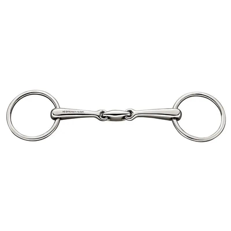 The MAX-Control is a double jointed bit which, at first glance, cannot be distinguished from other double jointed loose ring snaffles. However, it is a correction or training bit which locks at a certain angle and thus becomes a straight bar. The bit lies very well in the mouth when the horse is working properly. When the horse opposes the rider's hand, the rigid effective becomes more intensive.
