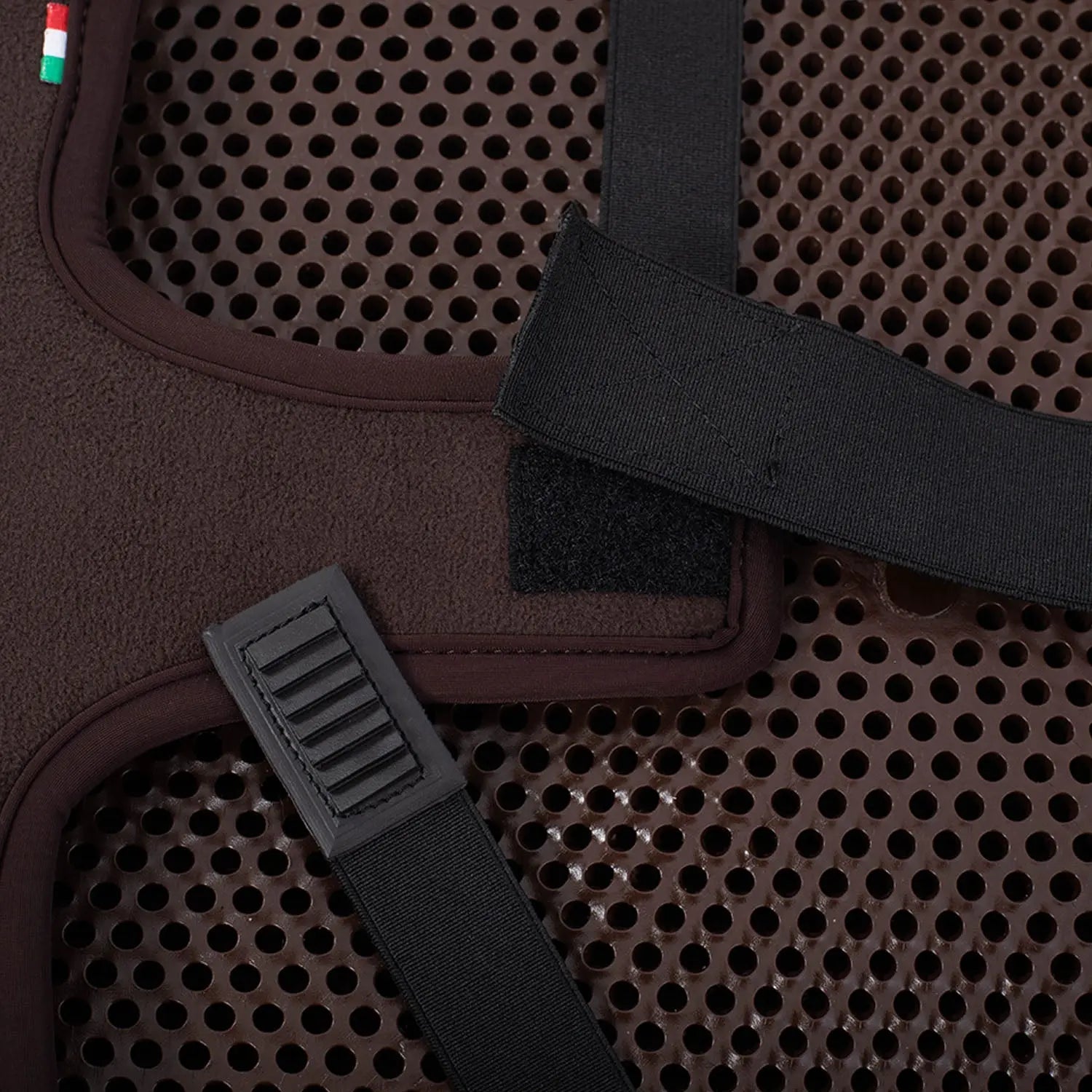 >The seat saver is equipped with an elastic strap with Velcro which runs lengthwise along the lower part of the saddle and hooks onto the panels, without changing the normal saddle supports. The hooking system thus allows not to modify the original structure of the saddle, at the same time providing the typical elegant design of Acavallo products.
