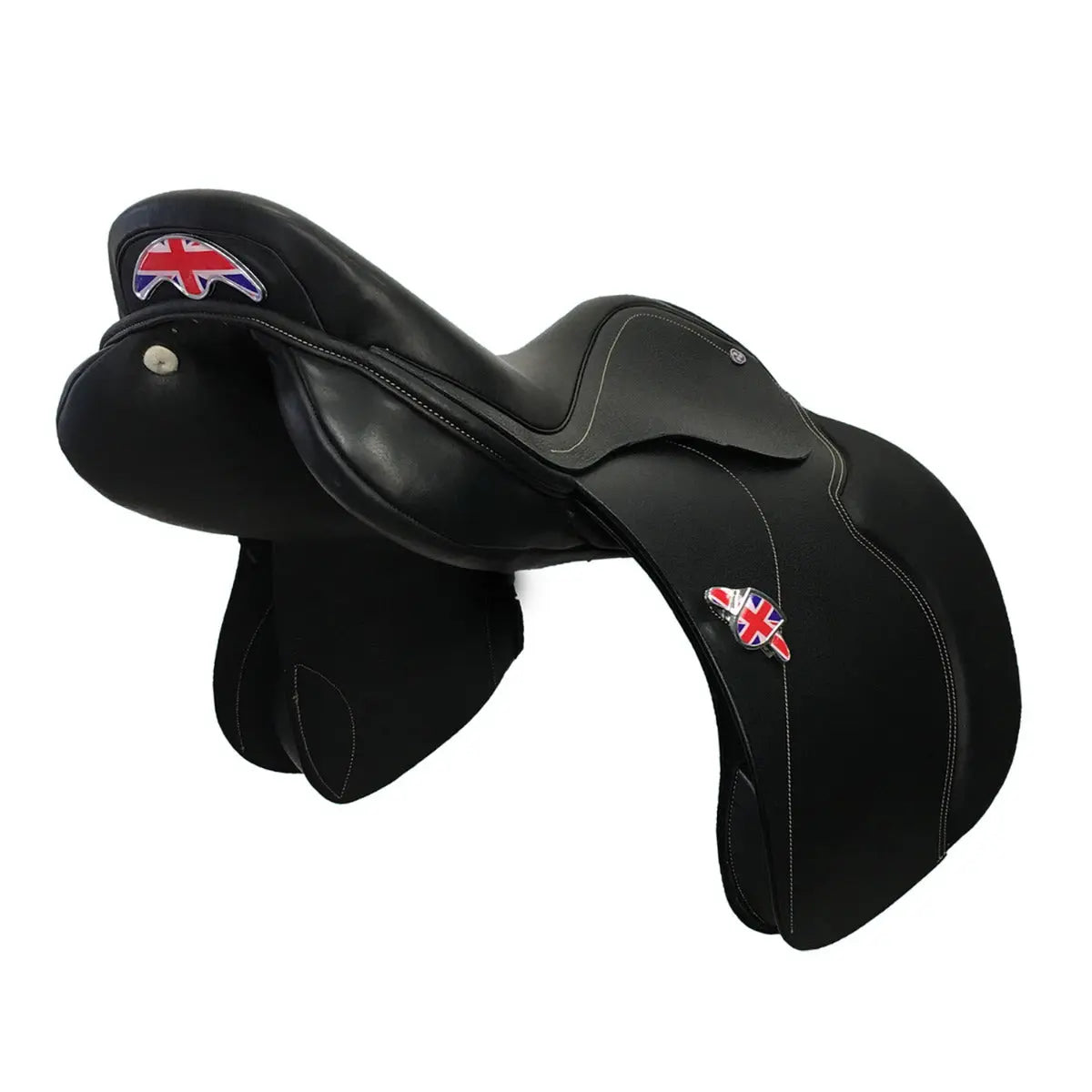 Suitable for show jumping, cross country, hunting, and endless amounts of other activities this universally designed jumping saddle is made from quality full-grain leathers and features wool flocked panel and soft hide knee pads. It has been designed with style, comfort, and affordability in mind. Features our unique interchangeable gullet system with 6 width fitting options allowing you to easily adjust the fit of your saddle without the need to send it away, accommodating for changes to your horse's shape. Its forward cut shape, classic low seat with a moveable front block, and fixed rear blocks allow you to adopt the correct position and maintain stability for you whilst jumping. Also available are cantle and stirrup keeper badges allowing you to customise your look.