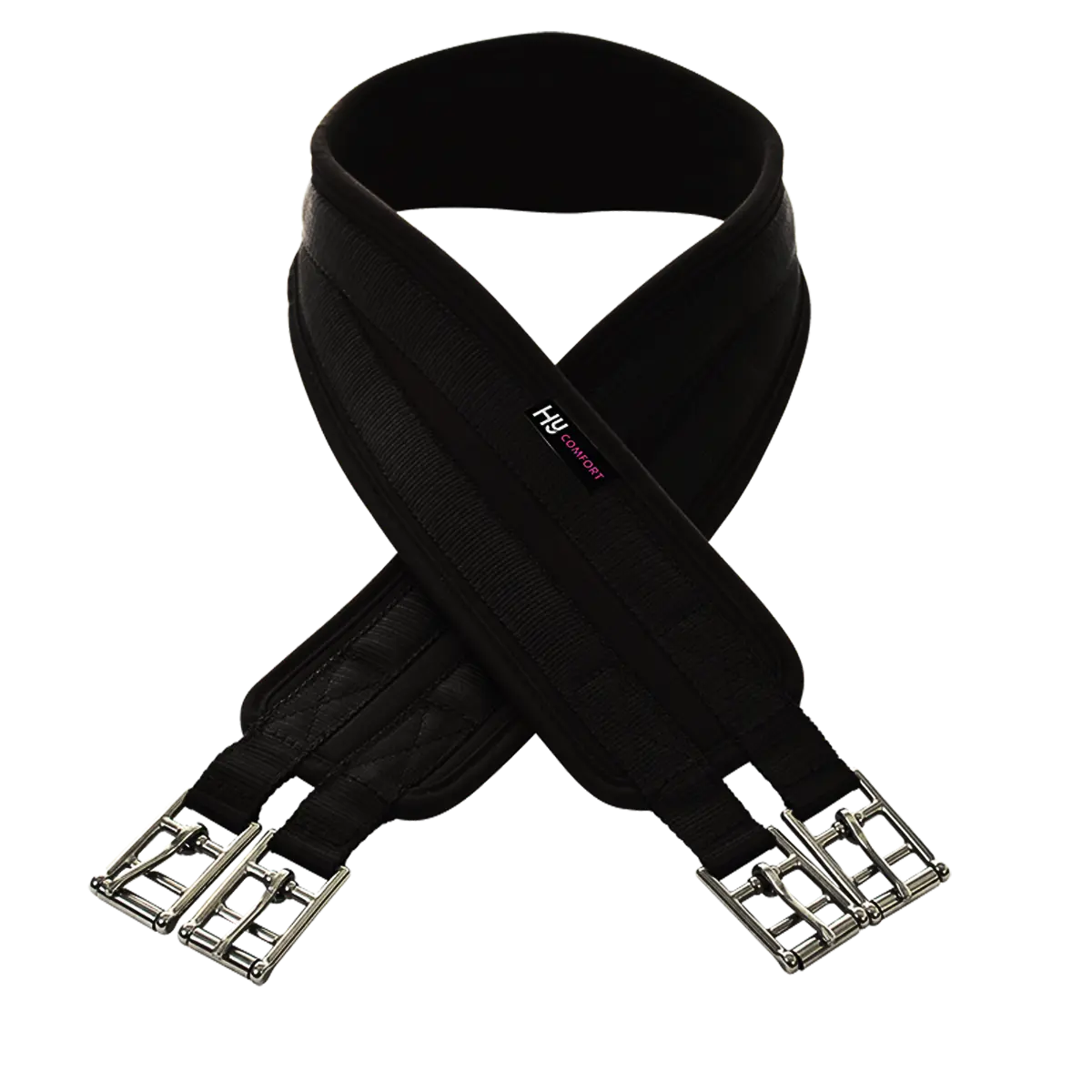 The Hy Comfort Cushion Girth is made from a strong yet soft webbing material which is shaped to offer a comfortable fit for your horse without chaffing and rubbing. It encourages airflow and is designed to reduce the amount of sweating beneath the girth. The stainless steel roller buckles help to aid attaching this girth. It's easy to care for and wipe clean.