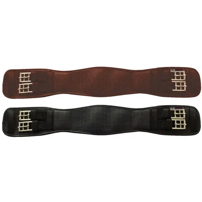 This HyComfort Waffle Dressage Girth is made with a super strong yet comfortable material. This Hy Girth is textured to allow airflow, shaped for extra comfort, moves comfortably without chaffing or rubbing. It is elasticated at both ends with stainless steal roller buckles. This girth is easy to clean & wipe too.