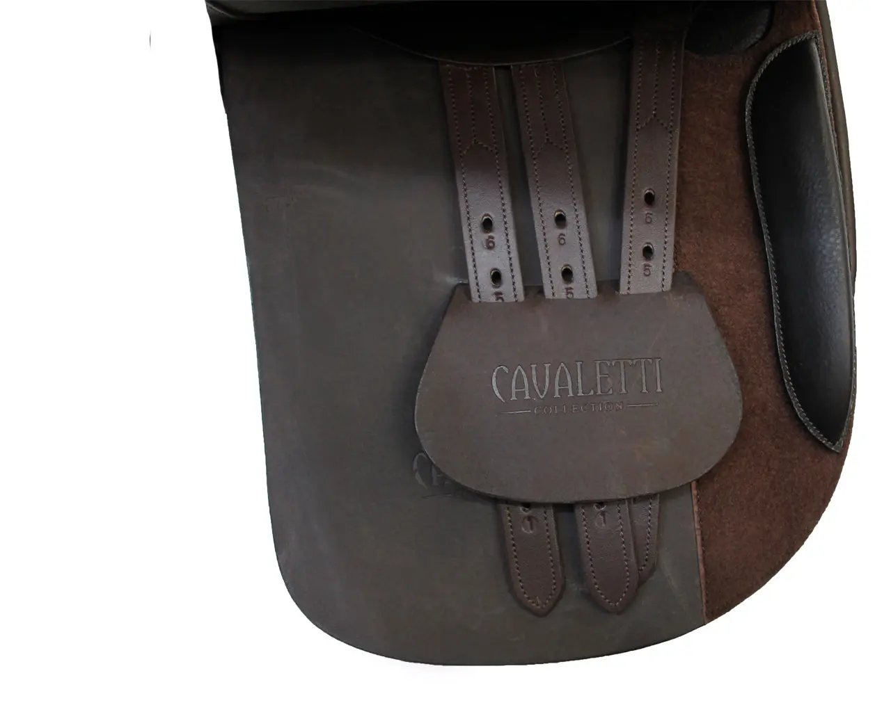 Suitable for the show ring this beautifully, slimline designed saddle is a must for all show enthusiasts. The Cavaletti Show saddle is made from the finest full grain leathers, featuring a wool flocked panel and soft hide knee pads. It has been designed with style, comfort and affordability in mind. Featuring our unique interchangeable gullet system with 6 width fitting options allowing you to easily adjust the fit of your saddle without the need to send it away, accommodating for changes in your horses shape. Slimline Velcro blocks allow you to adjust to suit your riding position. A classic low, flat seat gives a neater appearance for the showring.