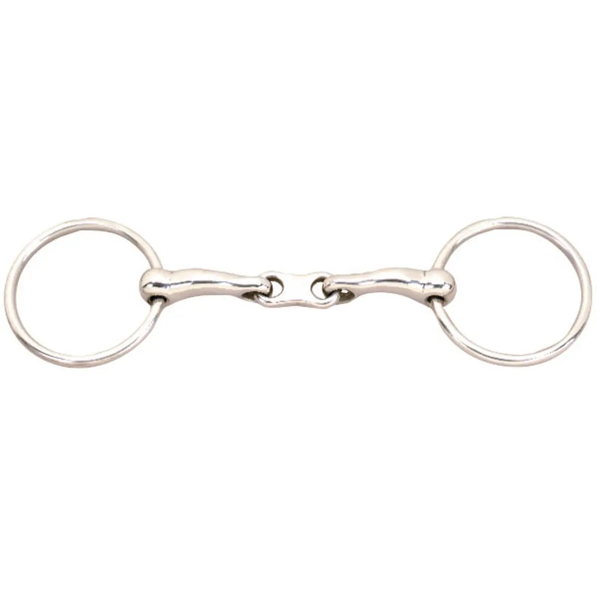 The JP Korsteel Stainless Steel French Link Loose Ring Snaffle Bit features a french link joint and a unique curved shape to the mouthpiece which has a multitude of benefits.