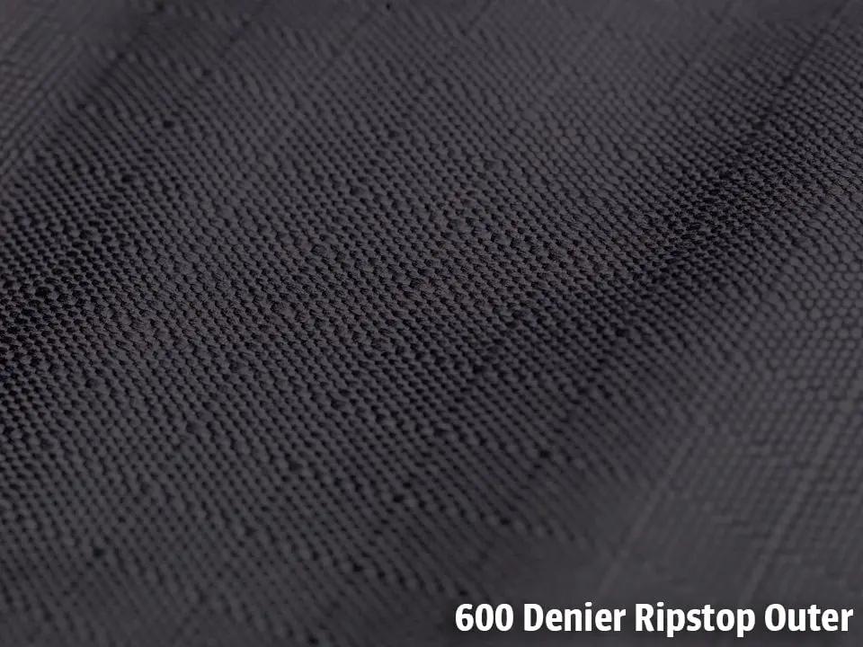 Strong and durable 600 denier ripstop outer shell with repel shell coating that is both waterproof and breathable.