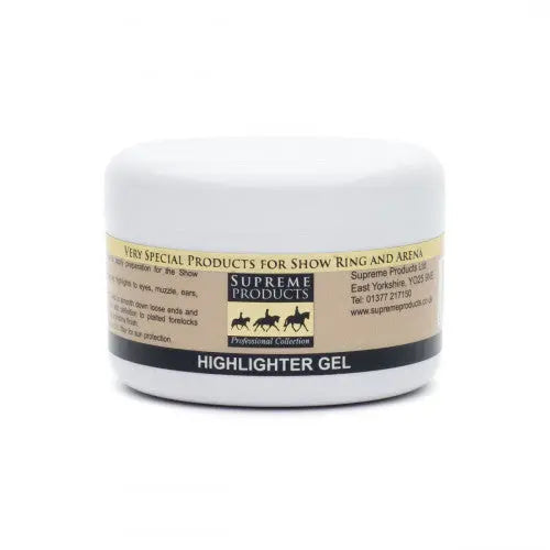 Use Supreme Products Highlighter Gel to enhance eyes, nose and dock, for smoothing down plaits and forelock and for the addition of quarter marks.