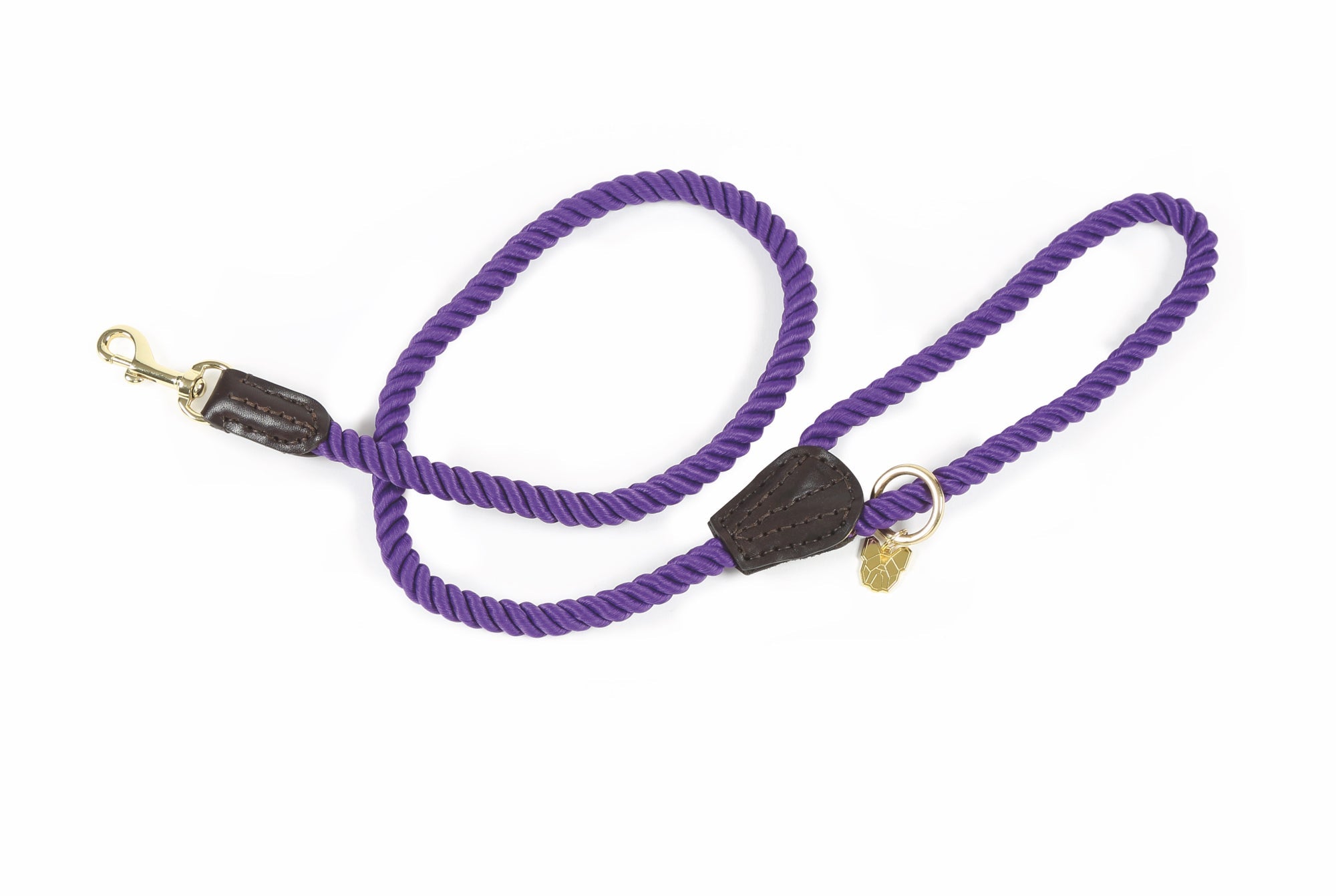 Ready for walkies! This flexible dog lead is made from soft twisted rope and available in a variety of bright colours! Brass ring, leather fittings, die cast Digby & Fox tag.