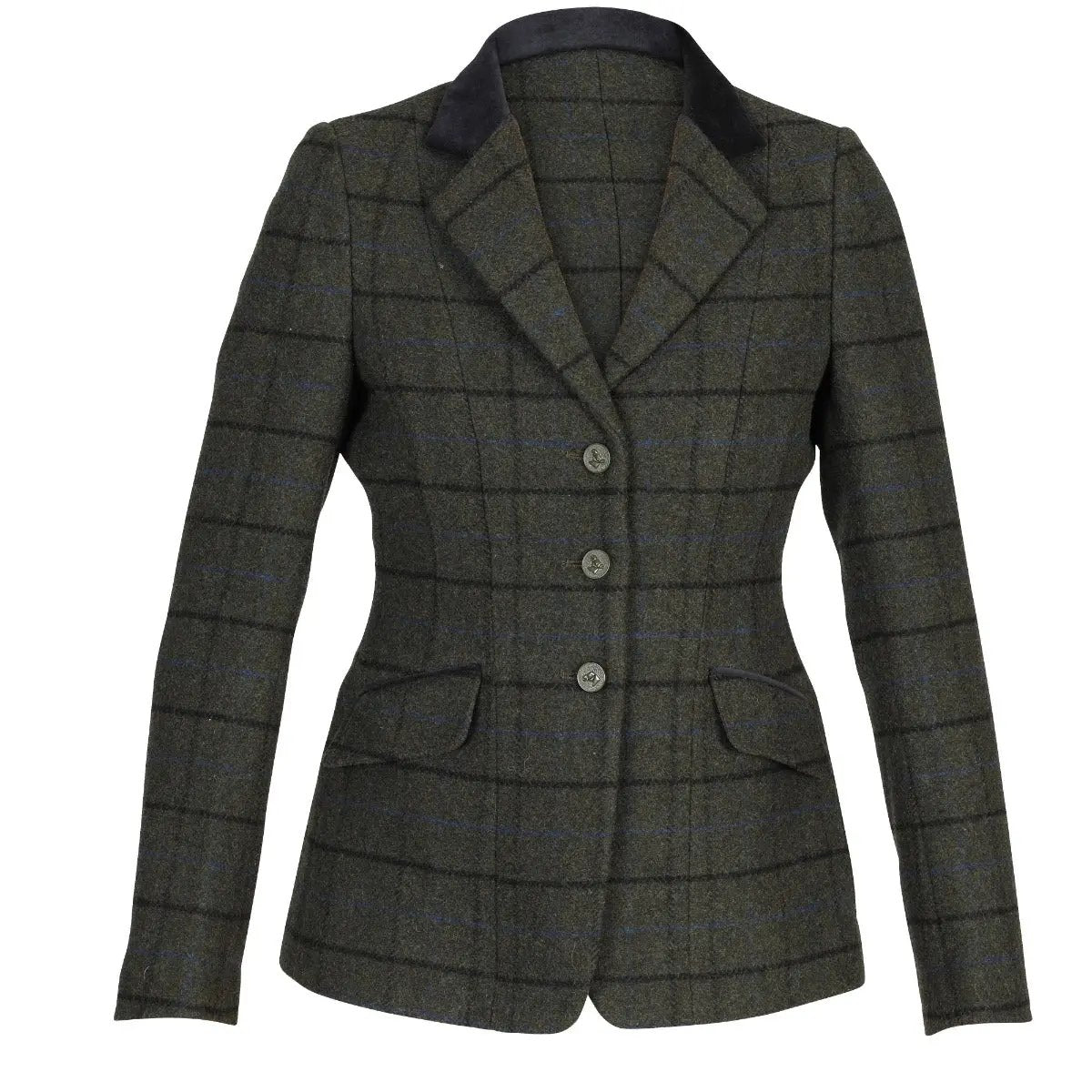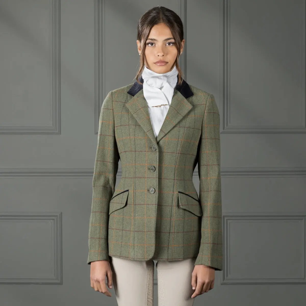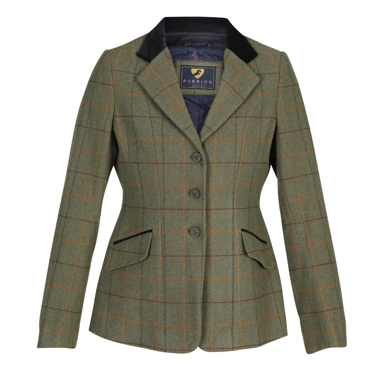 A timeless classic, the Aubrion Saratoga jacket is cut with a flattering modern contour fit, and tailored for free movement in the saddle. Attractive wool rich tweed cloth is complemented by velvet trims at the collar and pocket and a full satin lining. Suitable for a range of disciplines from showing, competition and countryside pursuits. Style detail: classic fit, velvet trims, 3 button front fastening, button detail at the cuff and back vents, two flap pockets, full satin lining.