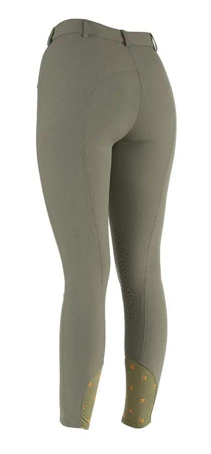 The Shires Aubrion Thompson Maids Breeches offer a lightweight, stylish breech with matte silicone knee grips. Featuring contour seat, zip hip pockets, belt loops and stretch lower leg cuffs with the Aubrion print.