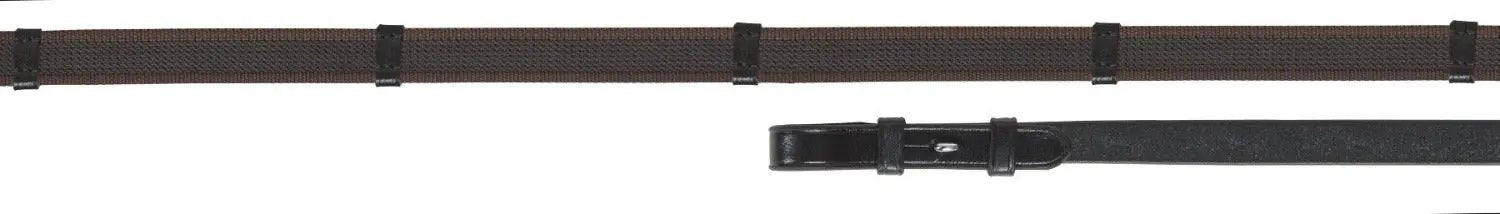 The Shires Velociti GARA Continental Rubber Grip Reins are anti-slip rubber grip reins. These reins are hand crafted with quality Velociti GARA leather, hook stud billets and stainless steel fittings.