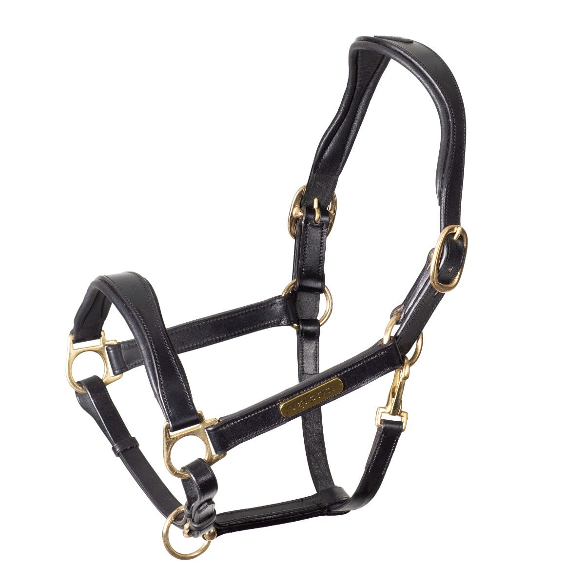Show smart and elegant, the Pro Series Plus Velociti RAPIDA padded leather headcollar benefits from pressure relief at the head and nose and a high shine finish. The FreedomFit headpiece is designed to alleviate pressure thanks to the wide, cushioned crown and cutaway ear profile. The noseband is cut widest at the centre, and together with cushioned soft leather lining, provides a high degree of comfort. The headcollar fastens on either side of the head strap, and at the crank-style noseband, a clip on throatlash offers additional convenience. Dyed with vegetable-based dyes, which are kind to the environment, the harness leather has a deep colour and is polished to a high-shine finish. Self-coloured stitching, brass fittings and a Velociti plate finish the look.