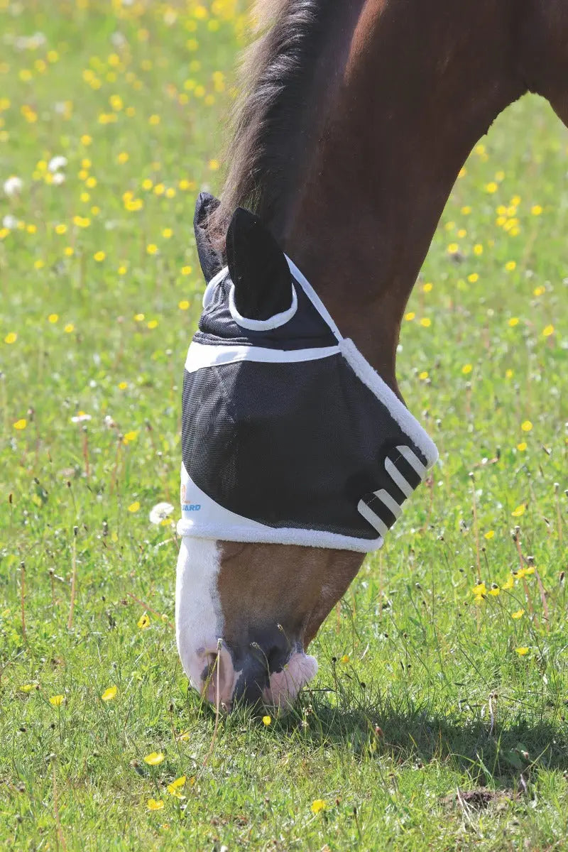 The Shires Field Durable Fly Mask With Ears offers a variety of benefits to the horse during fly season with a more robust outer than the standard fine mesh range making it ideal for horses prone to trashing masks. Firstly, the ears are fully covered to minimise biting ear flies and the mask still covers the poll which is a hot spot for horses with sweet itch and prevents irritation from biting insects; the nose cover extends right down offering full face protection which is useful for horses with a pale nose.