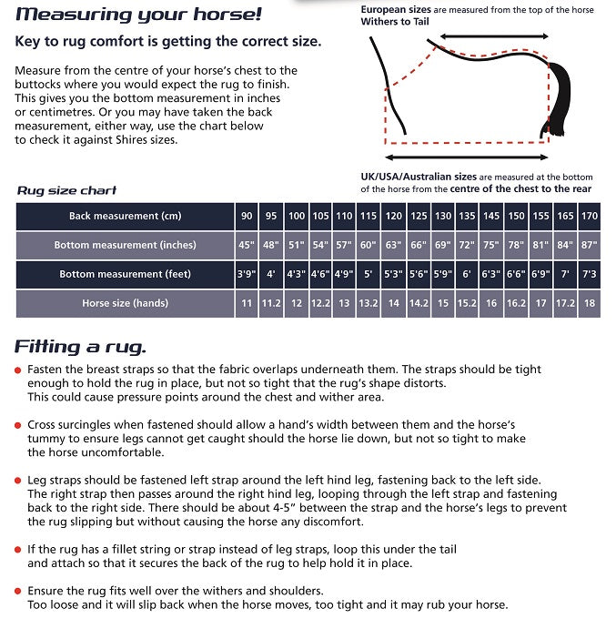 This lightweight Shires turnout rug features adjustable buckles to the chest, cross surcingles, fillet strap and tail flap.