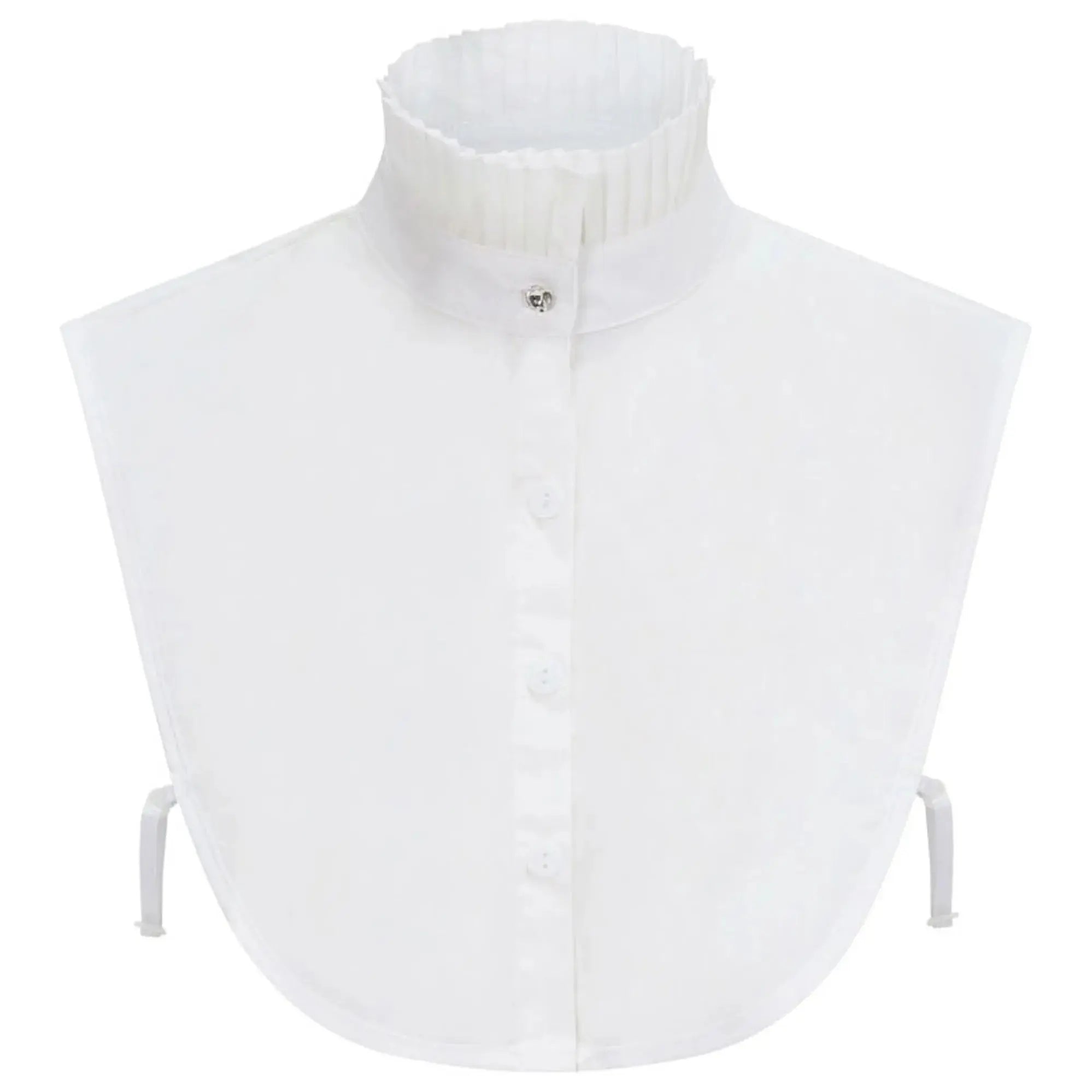 The Equetech Lead Rein Showing Frilly False Collar Bib is a clever accessory that can elevate your in-hand or lead rein show attire with a touch of refined style. This simple false collar and bib attachment easily fastens over your existing shirt or vest, instantly adding a polished look to your overall presentation in the ring. Made from high-quality polyester cotton, the Equetech Bib features a crisp, tailored frilly collar and front panel that mimics the appearance of a formal shirt front. Other features include buttons to front, crystal buttons to collar and adjustable elastic straps to secure in place. It's an ideal solution for those seeking to create a professional, polished appearance without the hassle of an additional layer of clothing. The clean, classic design of the Equetech Lead Rein Showing Frilly False Collar Bib makes it a versatile choice that can be paired with a variety of jackets. It's a smart economic investment for any equestrian competitor looking to put their best foot forward in the arena. Machine washable 65% polyester / 35% cotton Collar size: S/M - 13-15", L/XL - 15-17"