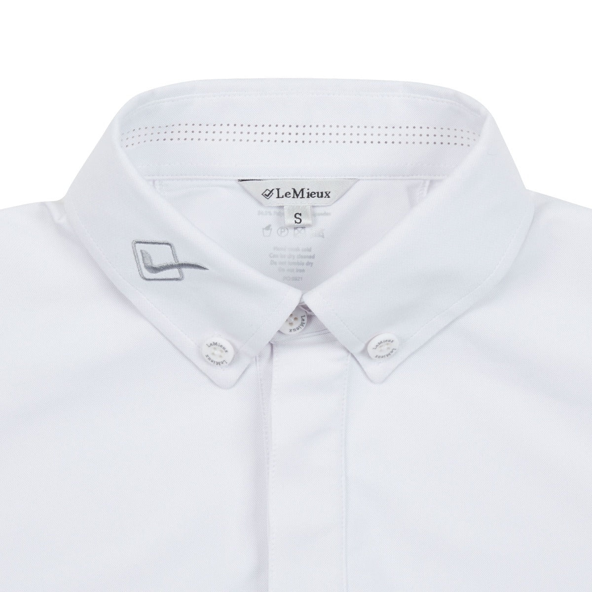 The only competition shirt you will need; the Le Mieux Monsieur Men's Competition Shirt is a luxurious, technical competition shirt tailored for complete comfort, with bonded seams to reduce any friction and lazer-cut underarm vents to regulate heat and sweat. Available in White; sizes X Small - XX Large.