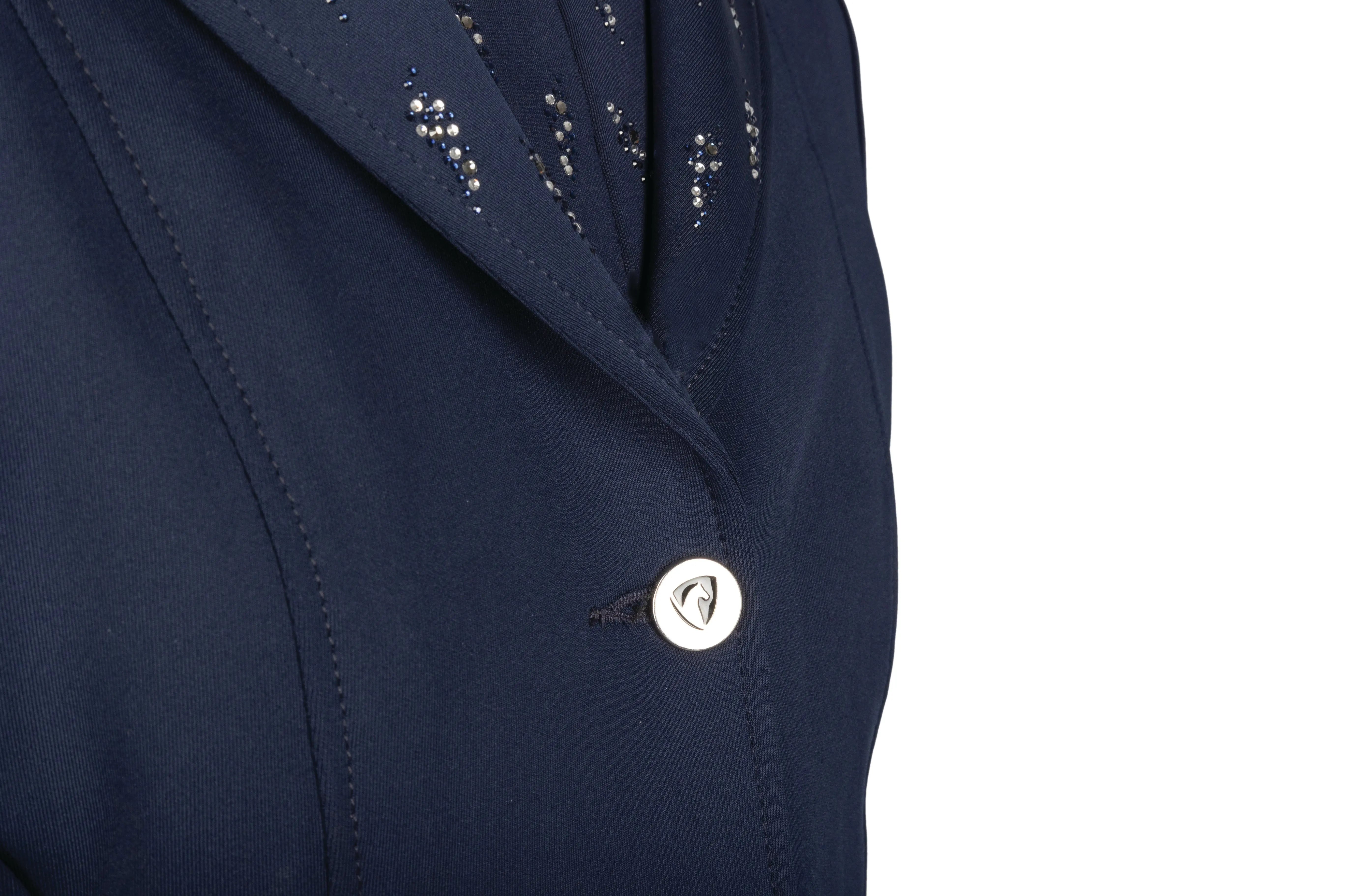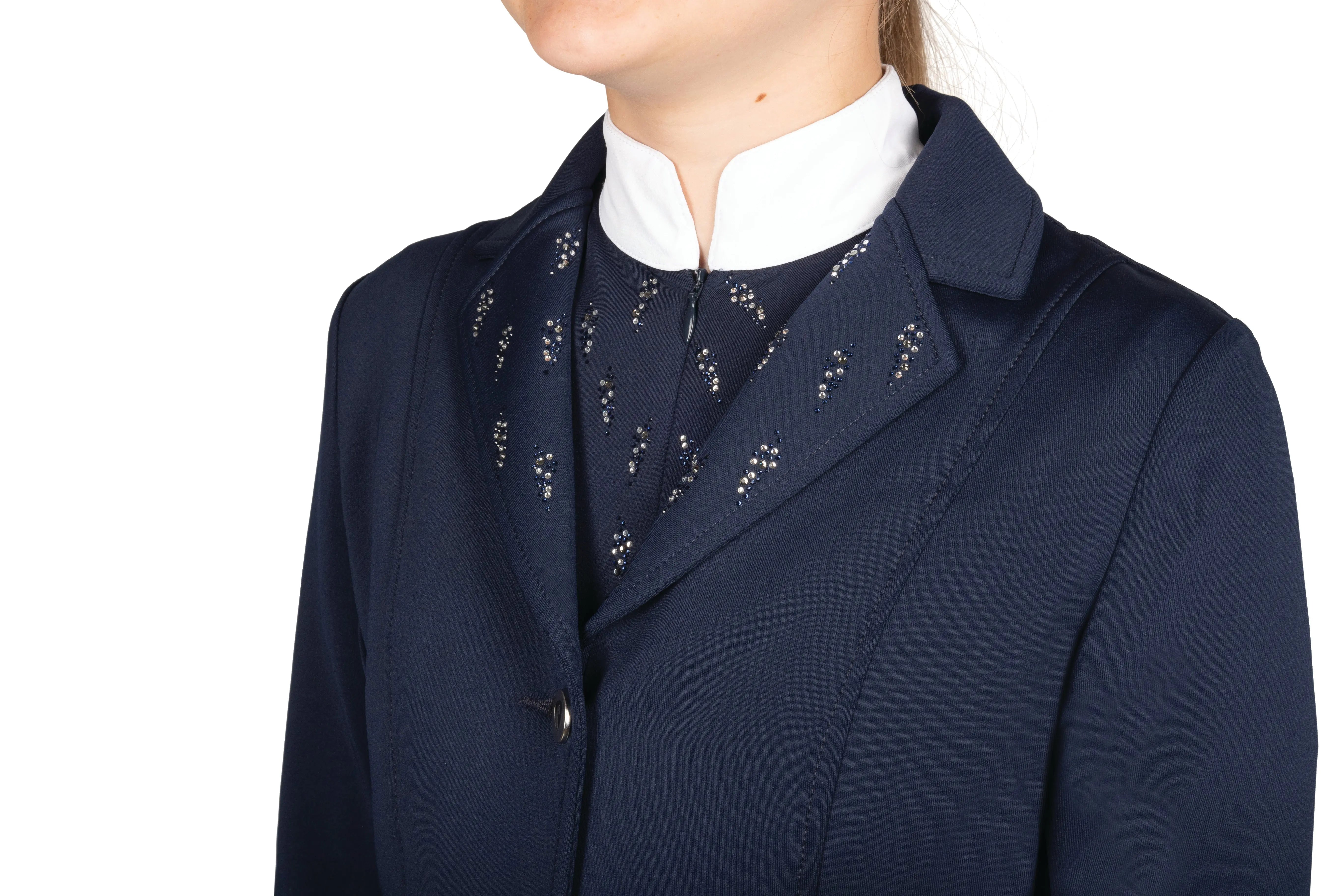 Finishing touches like elegant diamante detailing and classic button fastenings add a hint of sparkle and tradition to their competition look—perfect for making a confident impression in the ring.