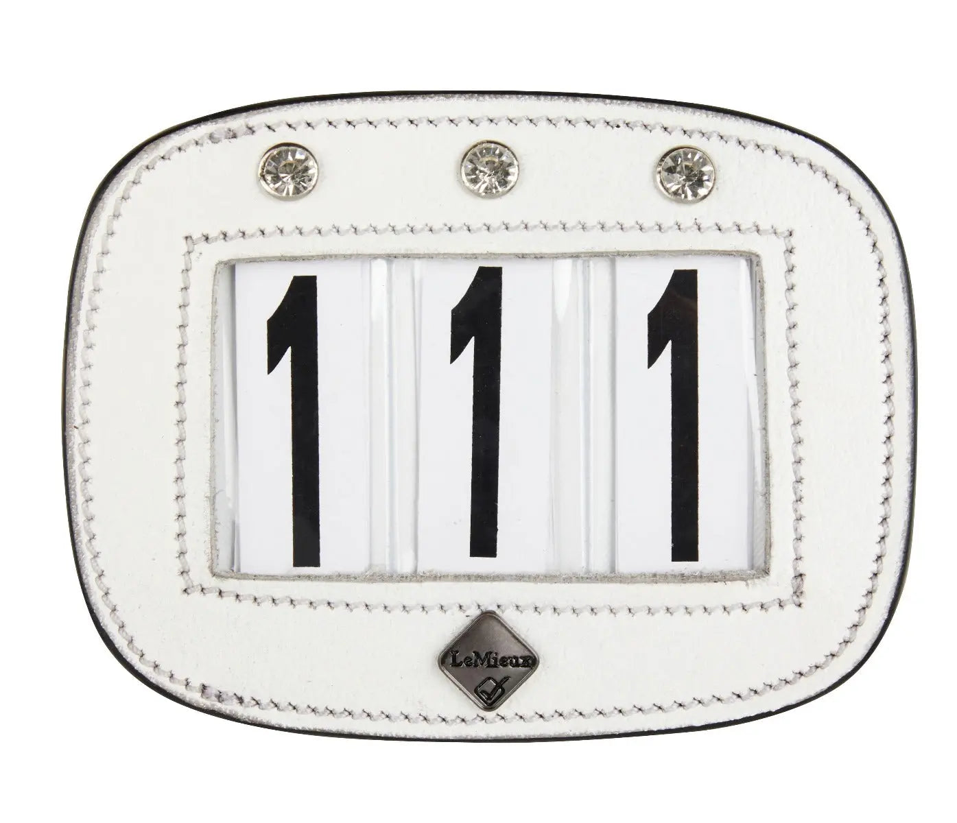 The LeMieux Diamante Leather Saddle Pad Number Holder offers a sleek and sophisticated way to display your competition number, with a bit of added sparkle.
