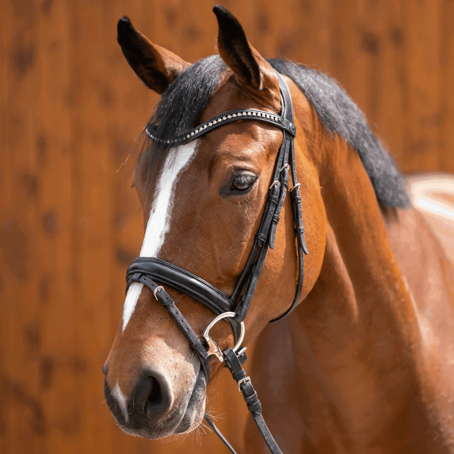 The Sprenger Dynamic RS Double Jointed Eggbutt Snaffle is designed with a central link/joint which is angled forwards by 45°, allowing a soft and even distribution of pressure across the tongue. This bit lies steady in the horse's mouth and is gentle on the corners of the lips, whilst supporting sideways acting rein aids.