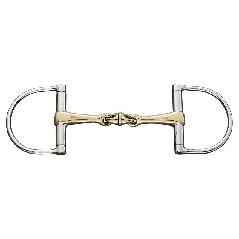Gives unbalanced and wilful horses more confidence as it supports the contact with the bit and remains steady in the mouth. The D-Rings prevent the bit from being pulled through the horse's mouth. Features a unique roller in the center section that brings an even better focus for the horse onto the tongue. Made from Aurigan which composes of 85% copper, 4% nickel with zinc for superb oxidation.