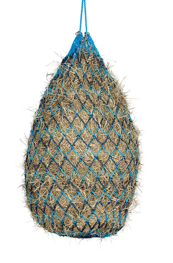 Extra strong haynet featuring metal rings at the bottom and around the top enabling easy filling and tying. Mesh features 5.5cm (2.25") holes to reduce wastage. Capacity: 6.5kg