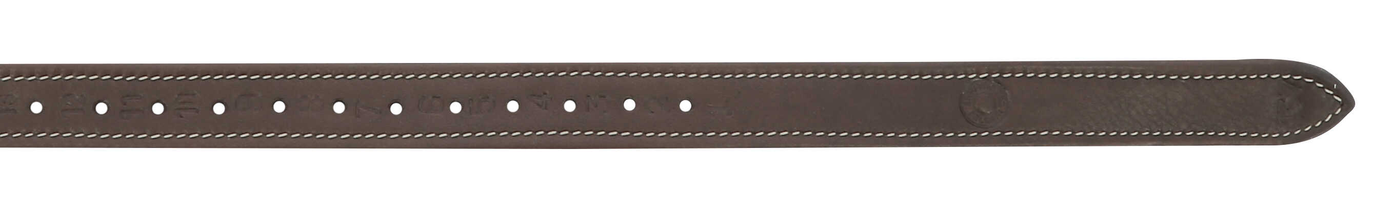 Cowhide stirrup leathers reinforced with a polypropylene strap