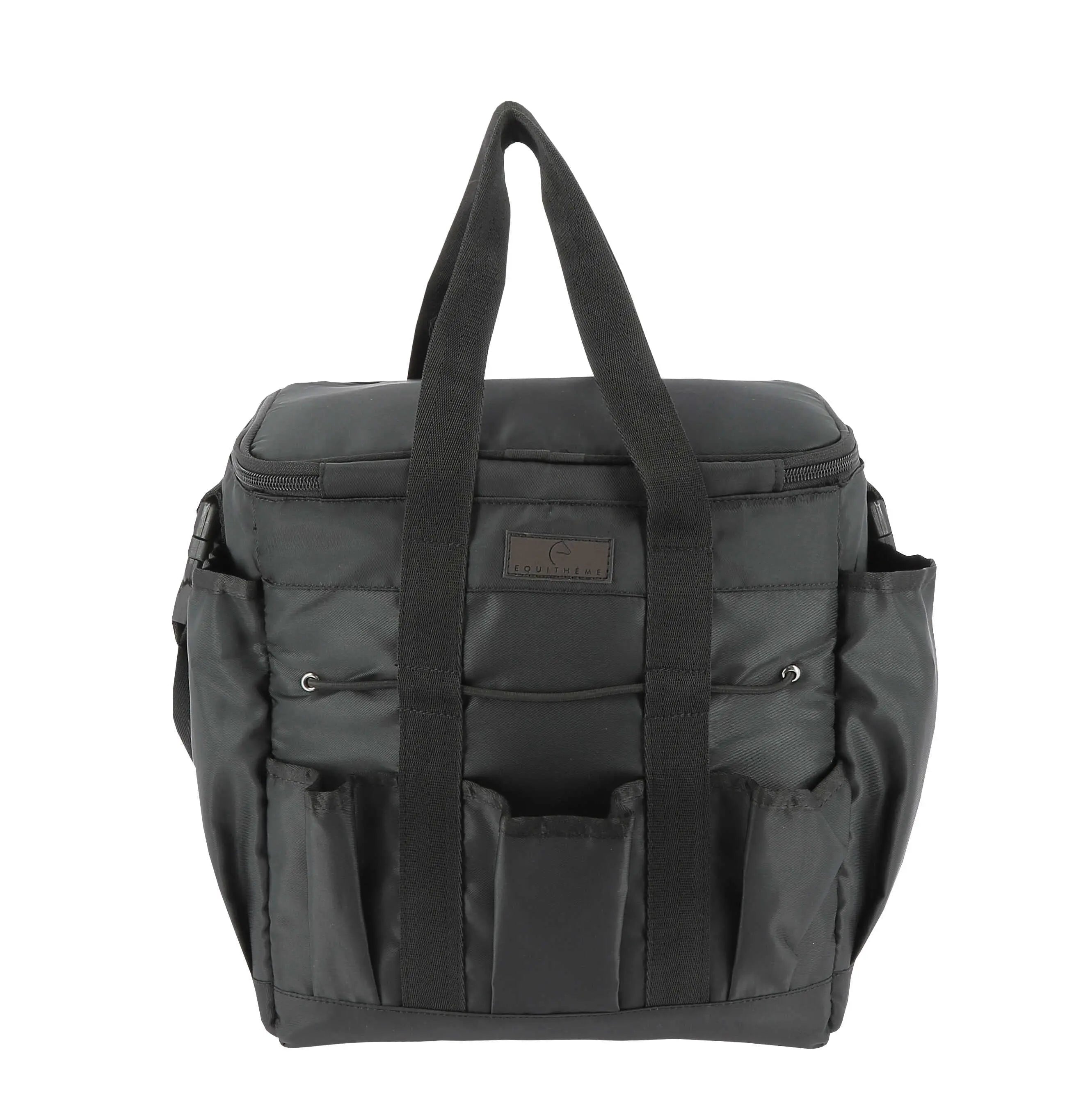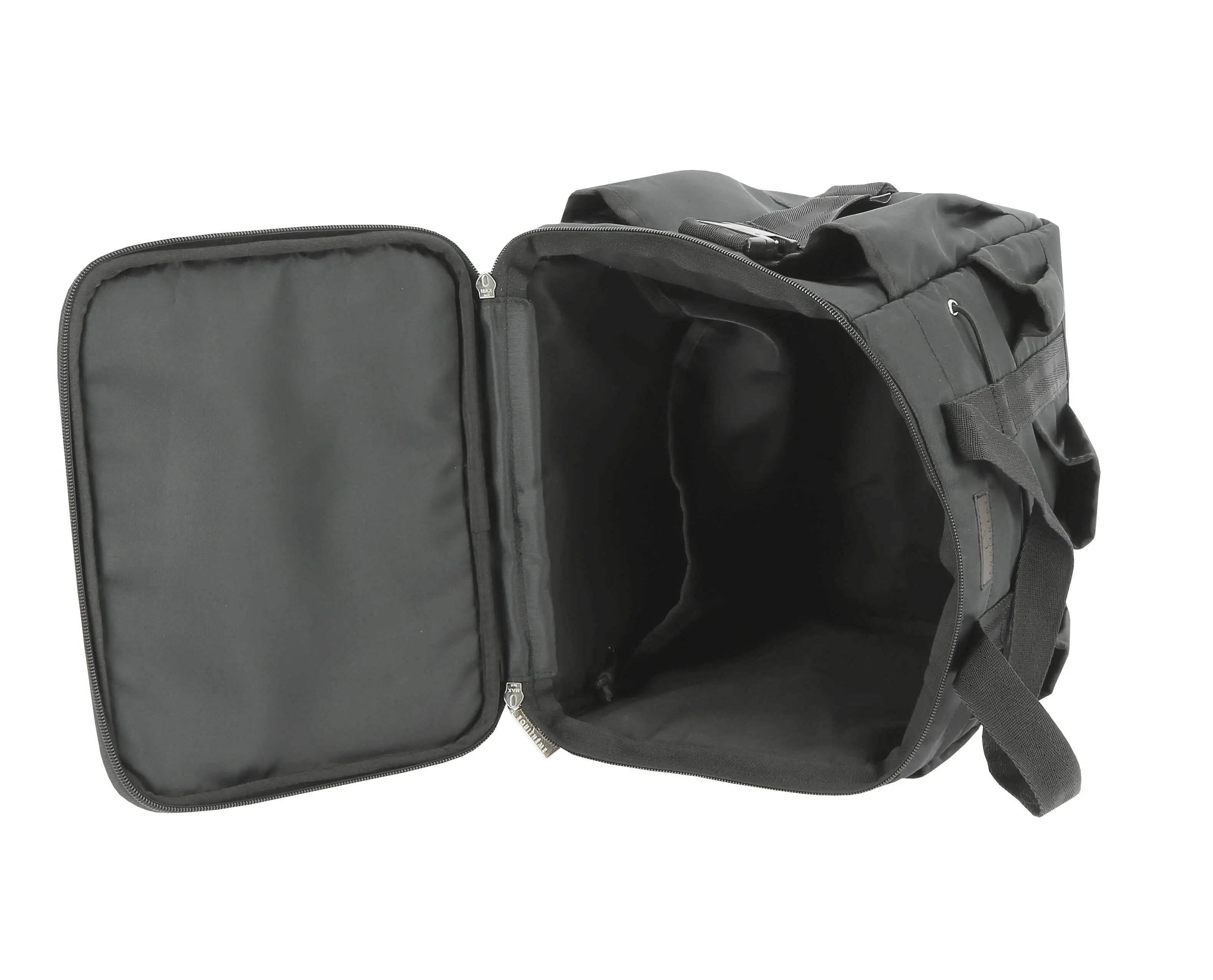 - Equipped with an interior pocket. Exterior features 6 small side pockets with elastic to hold bottles or other tall items.