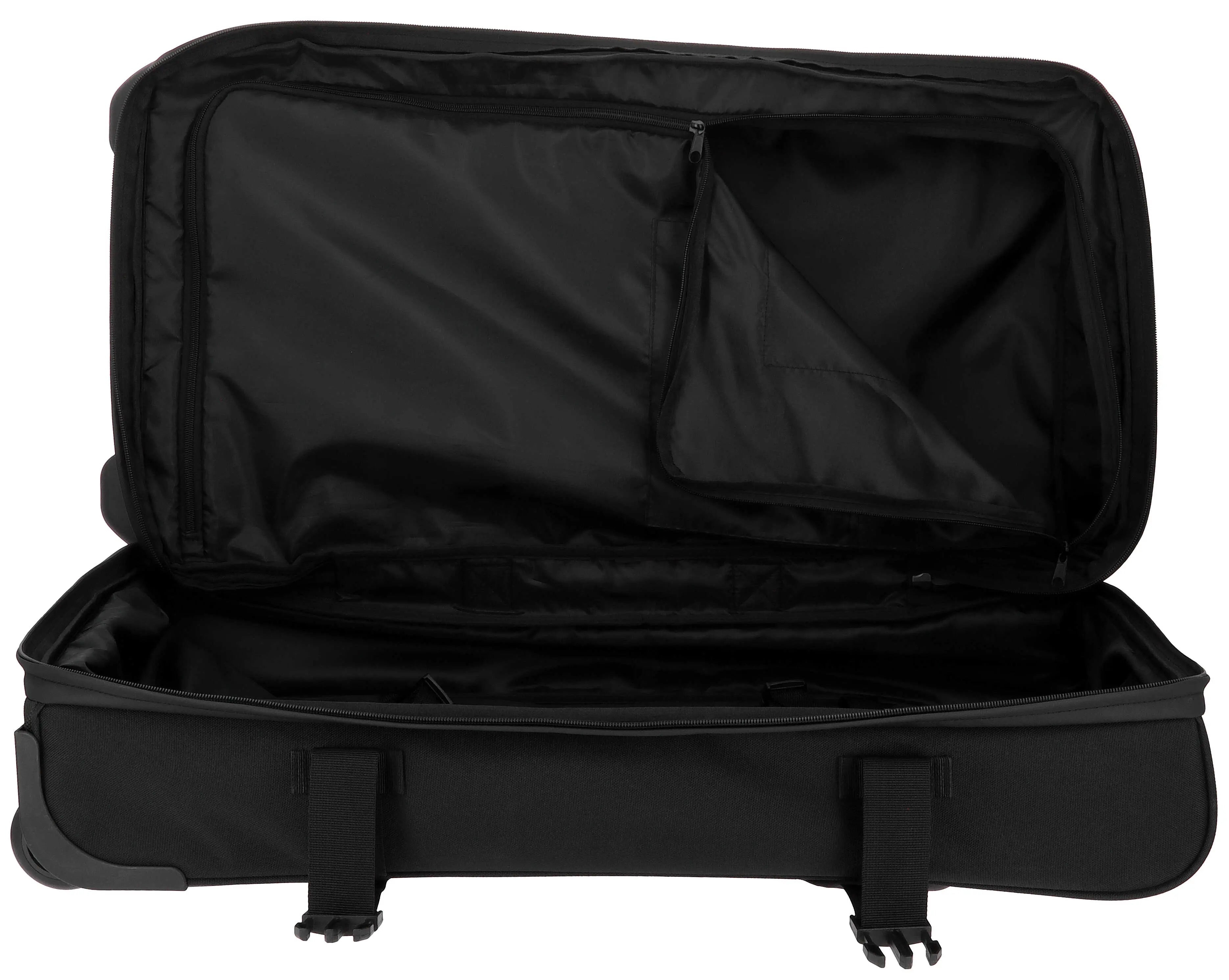 Rolling travel bag! - Large capacity: Generous space for all your travel essentials. - Compartments: A large main pocket with compression straps, zippered pockets, and an exterior pocket for quick access. DETAILS: - Lilac zipper finishes on the black bag, and black on the lilac with Equithème black logo. - Reinforced base for stability and shock protection, with a side and top handle. - Adjustable telescopic handle for ergonomic transport.