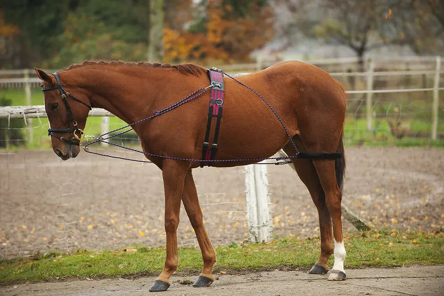 A very comprehensive training aid, simultaneously favouring a good hold on the forehand, great back mobility and engagement of the hind legs, thanks to its pulley system and its connection to the top part of the roller.