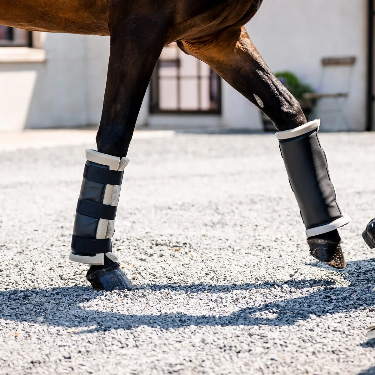 Securely fastened by ample quilted hook-and-loop straps  These boots are a smart addition to any horse's travel attire.  Supplied in pairs.