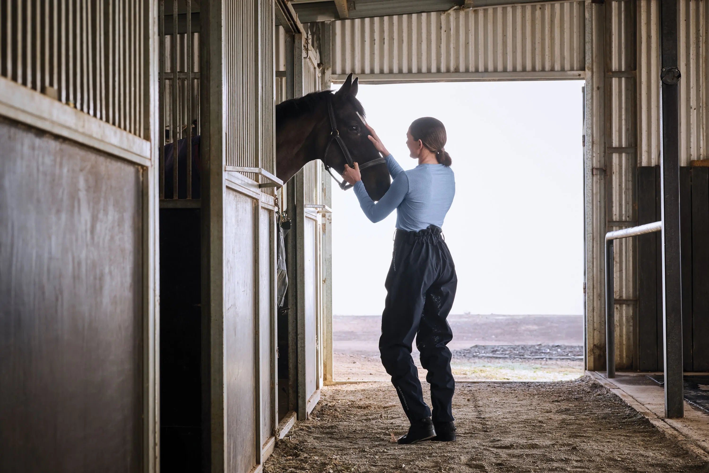 Stay dry, comfortable, and in control no matter the weather with the WeatherBeeta Rayne Waterproof Overtrousers II. Specifically designed for equestrians, these overtrousers offer superior protection against the elements while ensuring you remain visible and secure in the saddle. Whether you're starting your ride before sunrise or facing an unexpected downpour, the Rayne Waterproof Overtrousers II provide reliable weatherproofing, durability, and customisable comfort to keep you focused on what matters most – your connection with your horse.