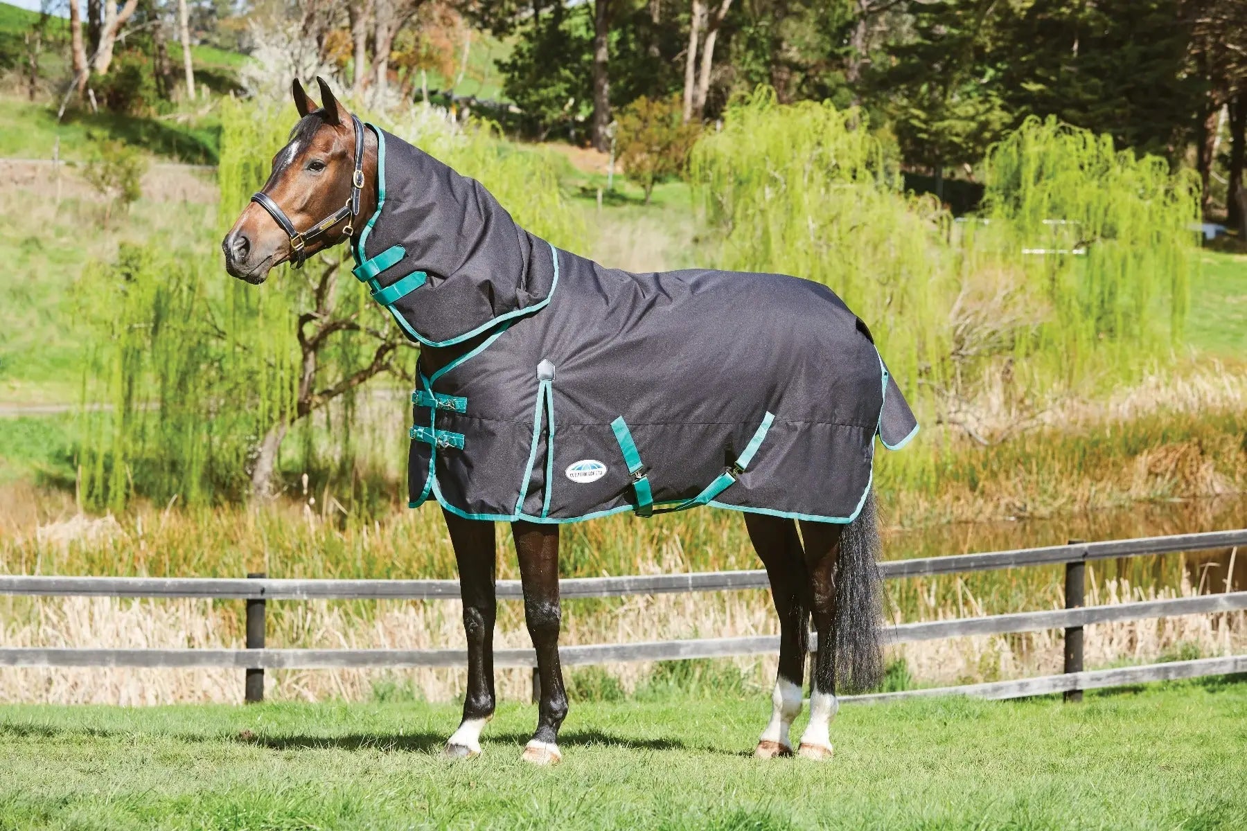 The 900D waterproof and breathable outer material is durable to stand up to daily wear and tear; a 150D Diamond Weave lining to this rug is strong and durable. This rug has a detachable neck, offering a high level of versatility, attached with strong overlapping velcro straps. Additional features include a quick clip front closure with buckles for adjustment, traditional side gussets for extra movement, twin low cross surcingles, a large tail flap for protection and removable, adjustable leg straps.