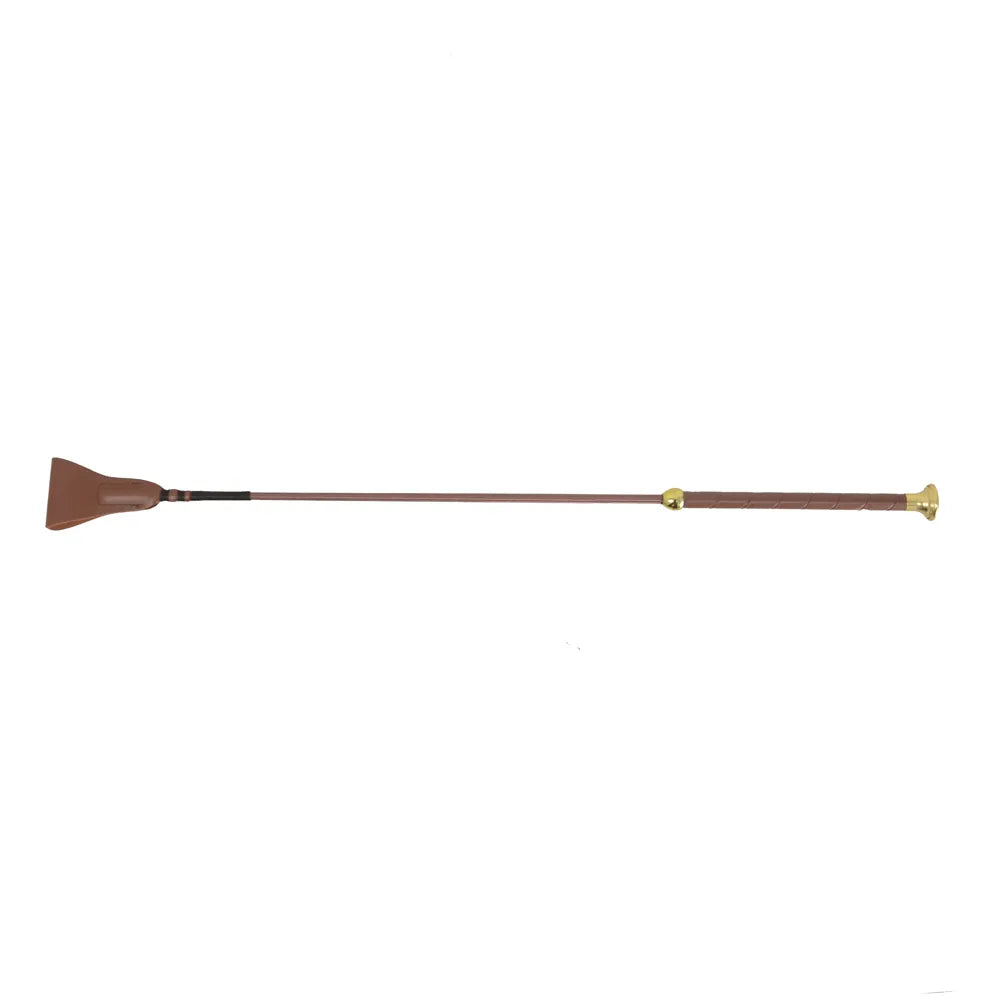 Look the part with the new Faux Leather Riding Whip from Hy Equestrian. This smart whip creates a professional appearance with the classy light brown shaft, handle and accessories. A gold topper matches that between the handle and shaft.