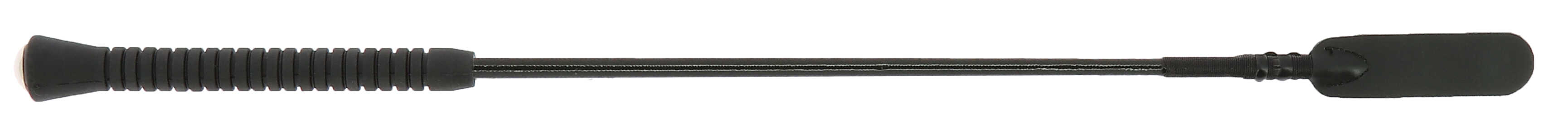 - Body and handle: Braided with black varnish, non-slip rubber grip. - Metal end cap, leather flap, long.