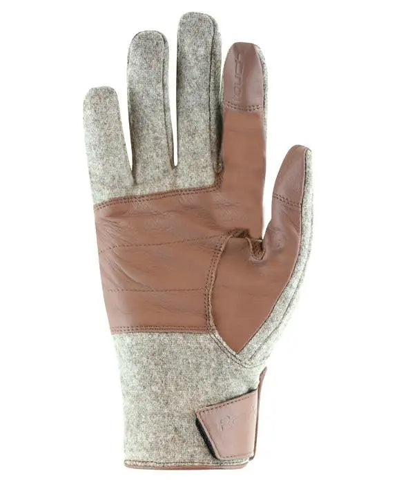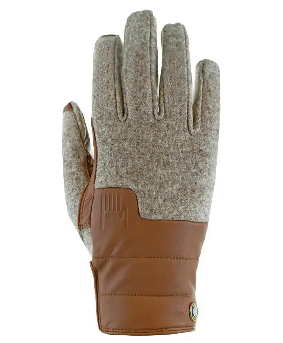 Daily barn work, walking the dog, outdoor recreational activities—the warm WINDHAM 2 is a great choice whenever top thermal performance and a fashionable look are in order. Like all models in the innovative PFAS-zero ECO.SERIES by Roeckl Sports, it has been fashioned from ecologically oriented materials, which also earned it the coveted “high recycling ratio” label on top. It consists entirely of Pure Mountain Loden, a natural material manufactured in Germany from GOTS-certified virgin wool of European origin. It is not just efficiently breathable and thermoregulating but also highly durable. The loden is milled, a process that renders it dirt- and water-repellent as well as windproof. Moreover, it gives the glove a fashionable, near-natural look. Reliable grip on the dog leash, lead rope, or any other equipment guaranteed: The palm features robust premium hair sheep nappa leather, rendered water-repellent without the use of chromium, which has been extended all the way to the thumb, index finger, and the top of the wrist, where it serves as a stylistic highlight. This by-product of the food production industry stays supple even in sub-zero temperatures, guaranteeing consistently high wear comfort. Speaking of wear comfort: The recycled Eco lining warms the hands efficiently, and the wide Velcro fastener on the palm helps to make fine adjustments to the fit of the glove. This makes the WINDHAM 2 a TOUCHSCREEN COMPATIBLE allrounder that is as elegant as it is functional and demonstrates its quality not just while taking the dog and horse for a walk in the snow. Available in dark gray with black or in beige with brown leather trimmings. Featuring a stylish ECO.SERIES rivet.
