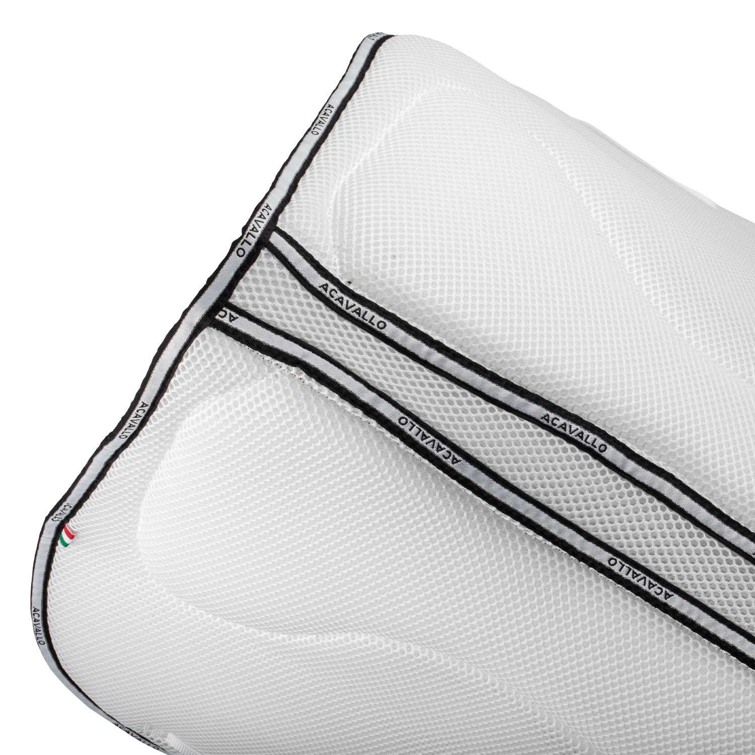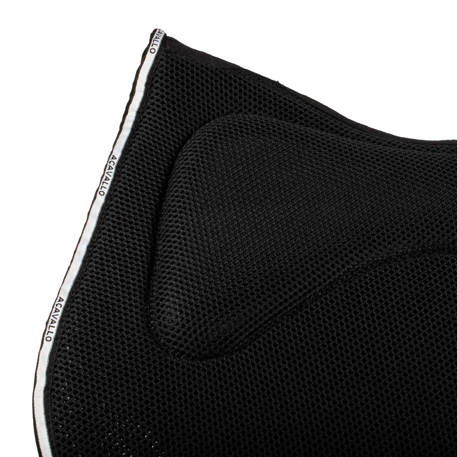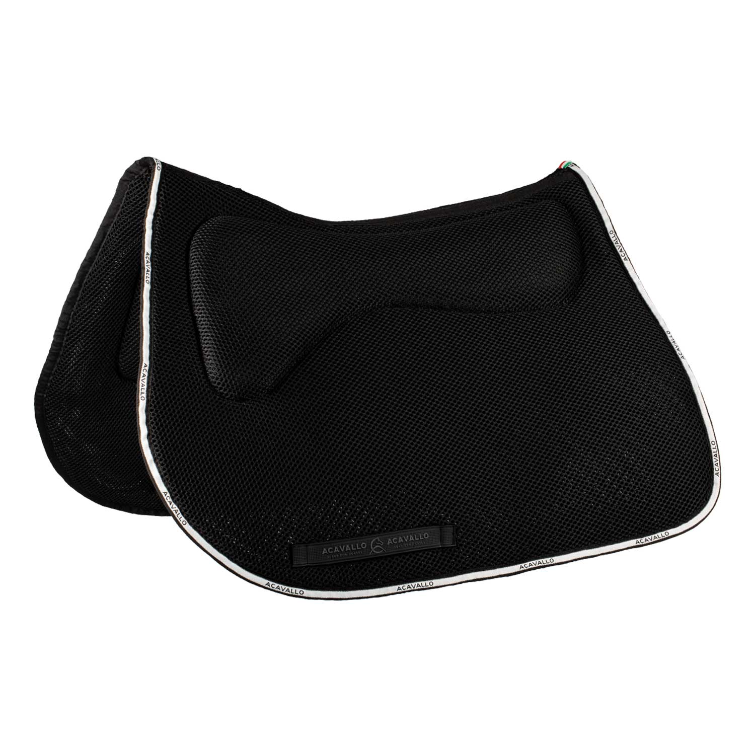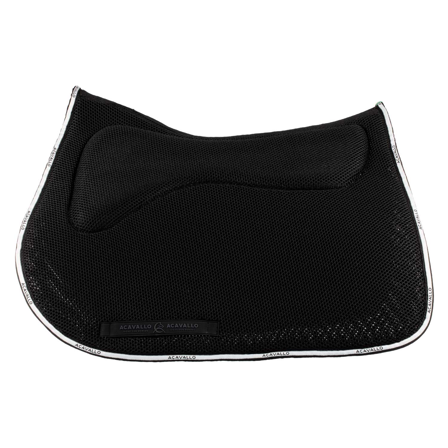 >The combination of memory foam and 3D spacer fabric allows the saddle pad to absorb shocks and dampen vibrations, further protecting the horse's back during the jump.