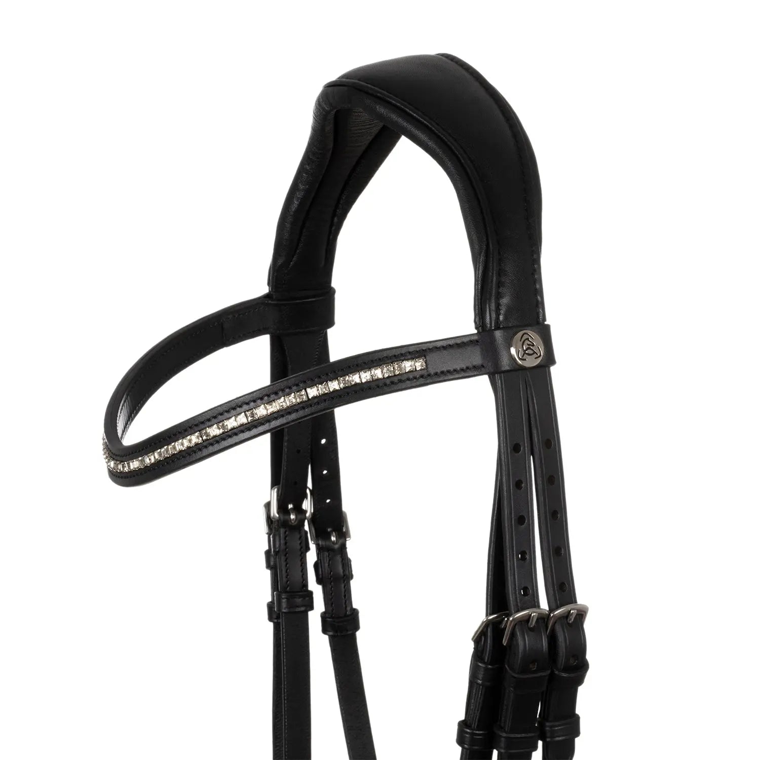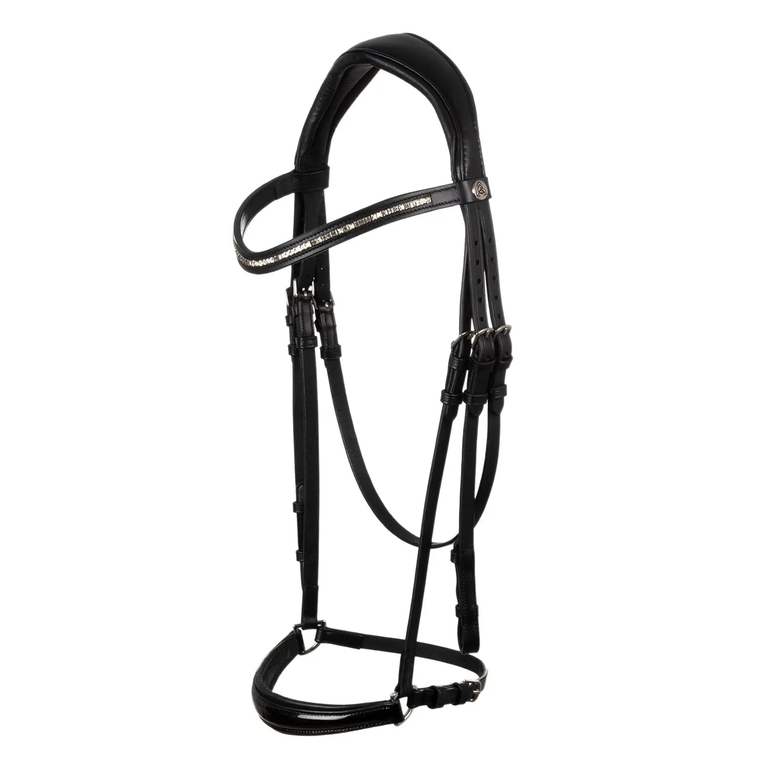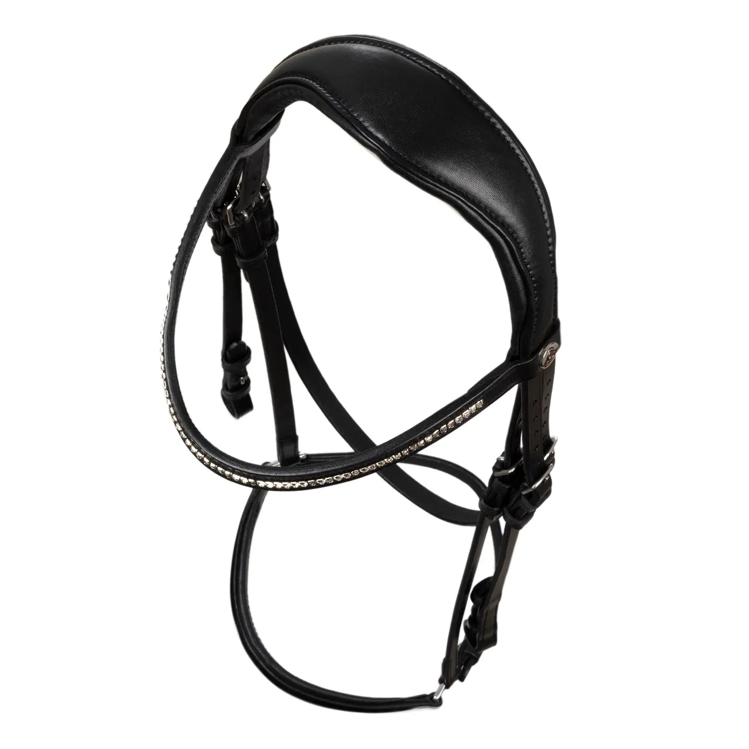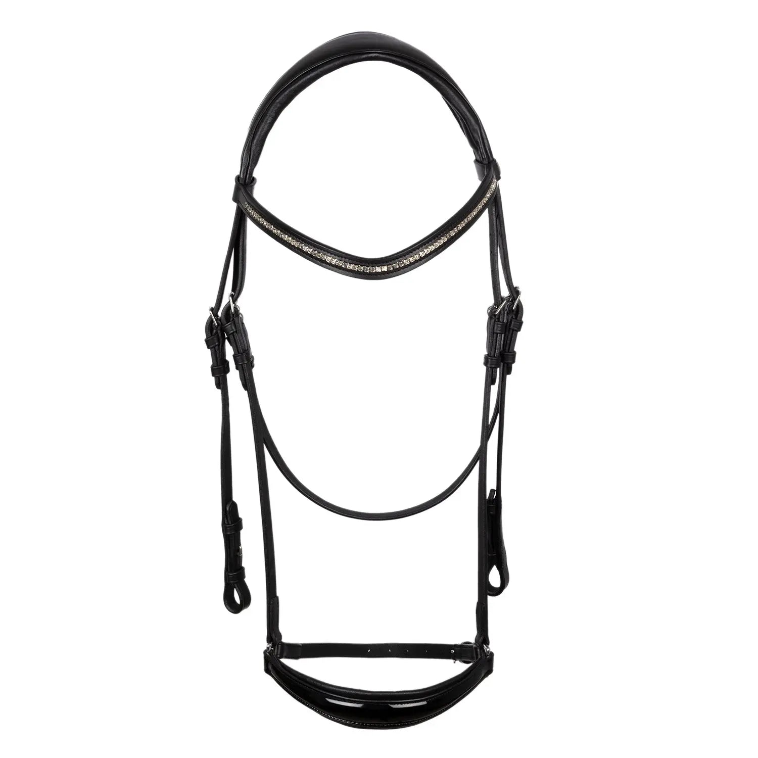 >The browband is an elegant distinguishing feature, covered in diamonds, giving the bridle a refined and sparkling design. It is the ideal choice for those seeking a sophisticated look in the saddle.