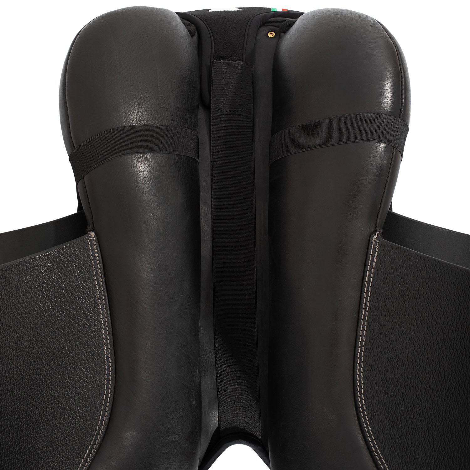 The seat saver is equipped with an elastic strap with Velcro that attaches to the saddle panels without altering the normal position of the saddle. Furthermore, it features two straps with grip on the side parts, which hook internally to the saddle panels without altering their position.
