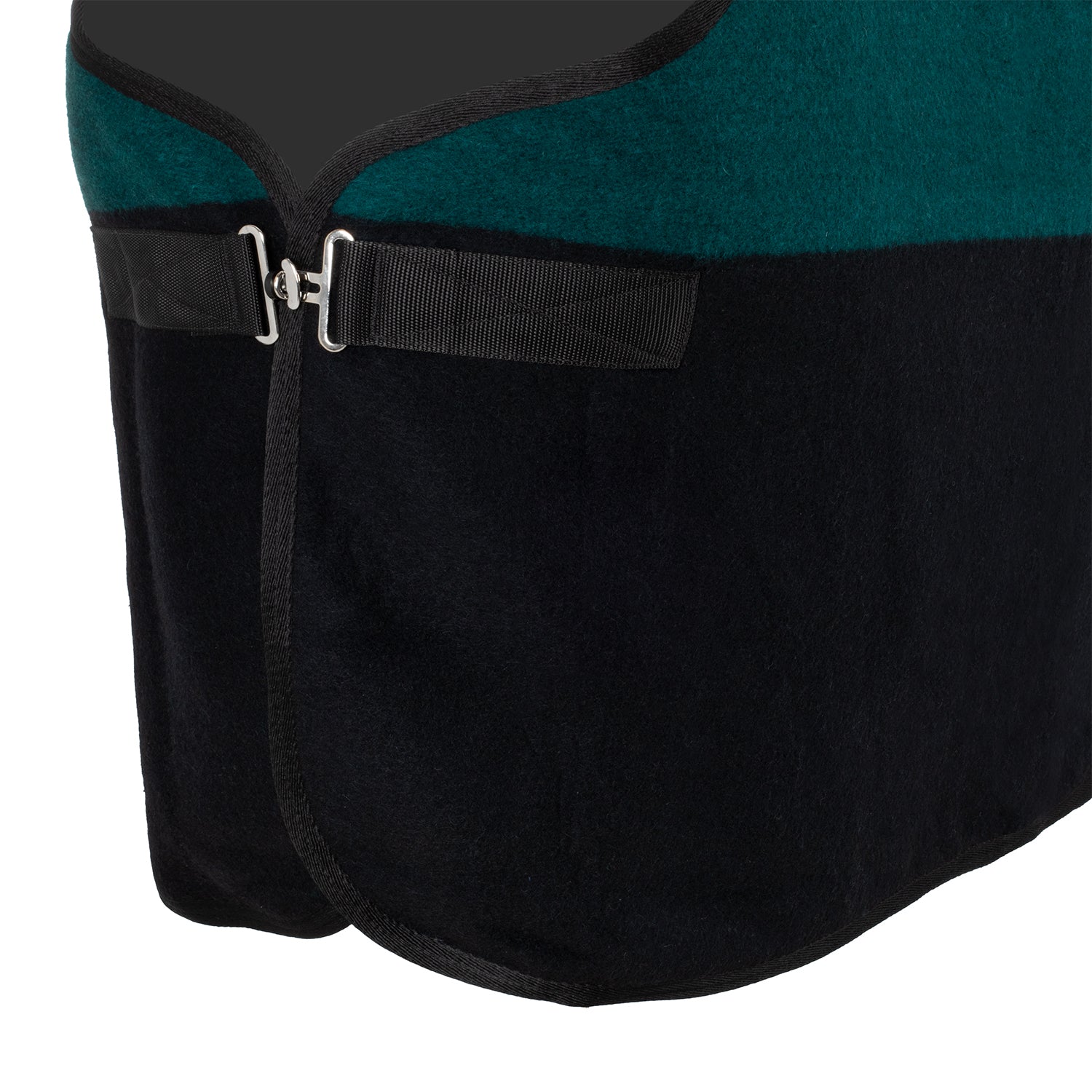 >The front closure with chrome buckle allows you to keep the horse warm without allowing the cold winter air to come into contact with sweat.