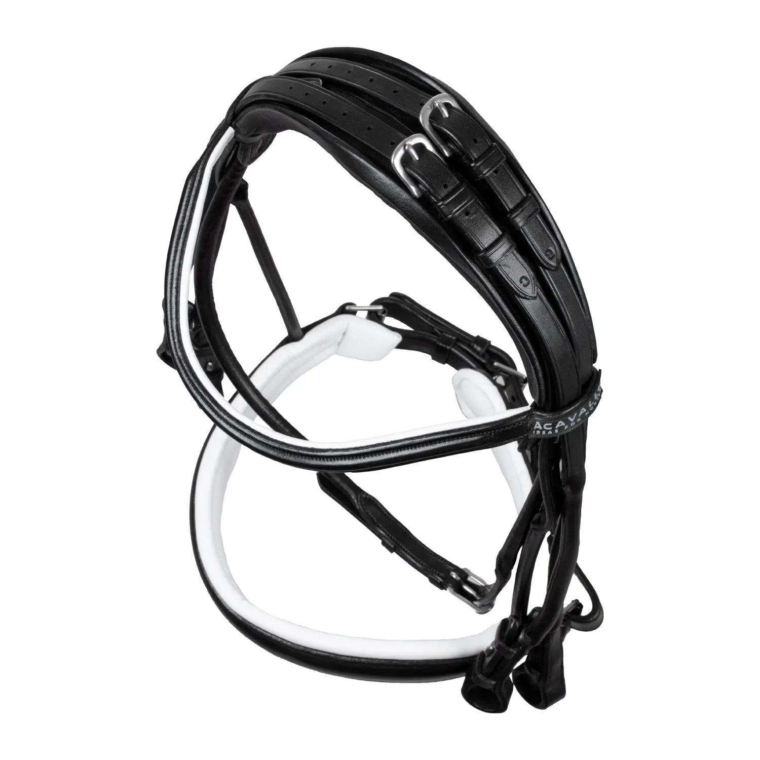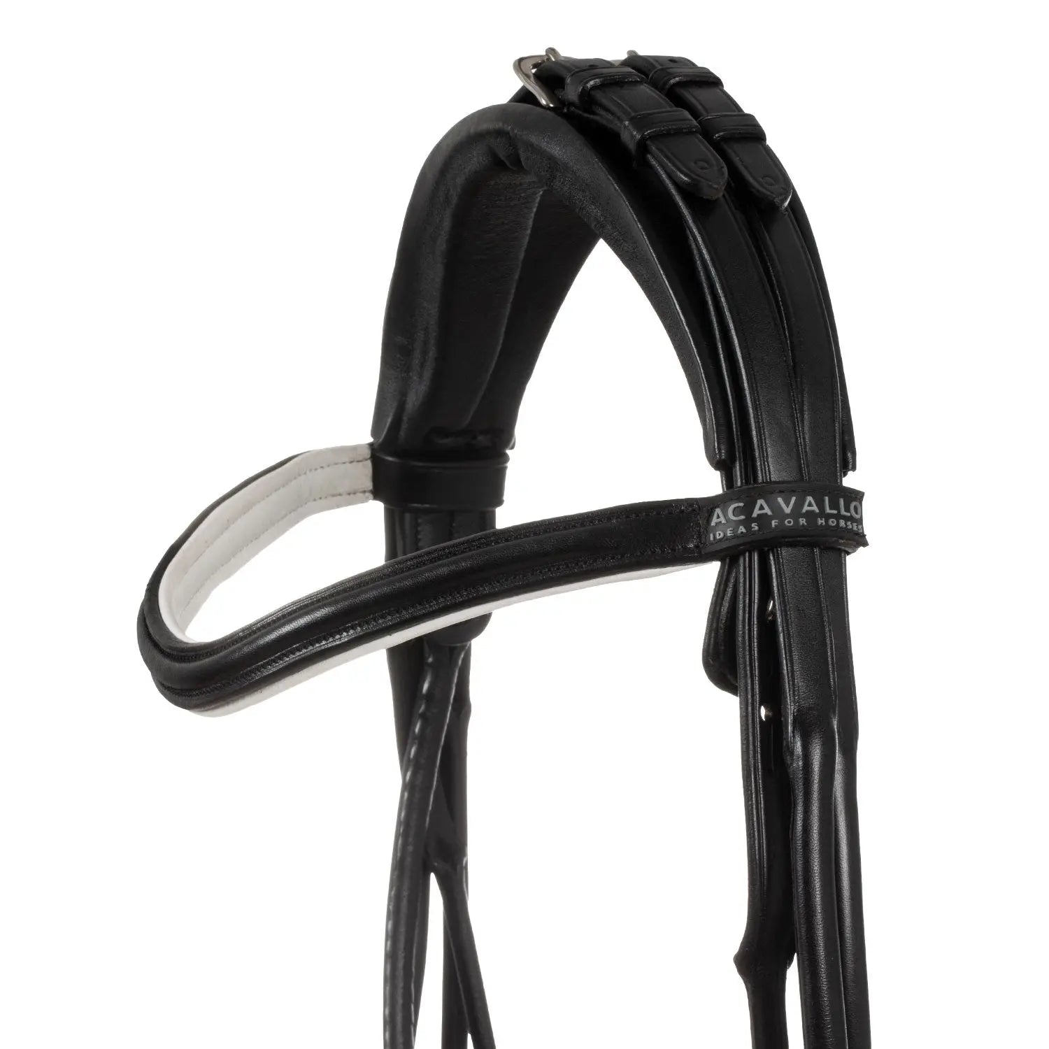 The browband and padded noseband with white piping give the headstall a refined design, typical of Acavallo products. The elegant adjustment system is placed on the headpiece, allowing the rider to customize the fit.