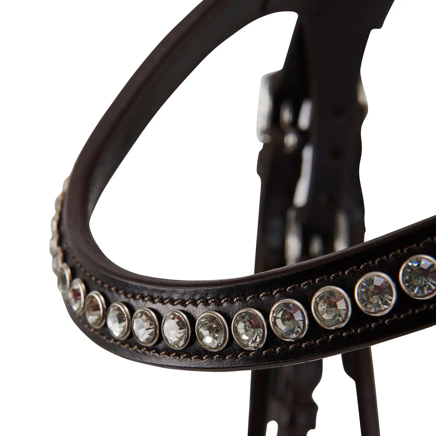 Anna Bridle Shaped Style With Stone Browband Patent Sytem With Pulley On Noseband Attachment Without Reins Silver Finish Fittings Size Cob Full Color Black Dark Brown Cognac