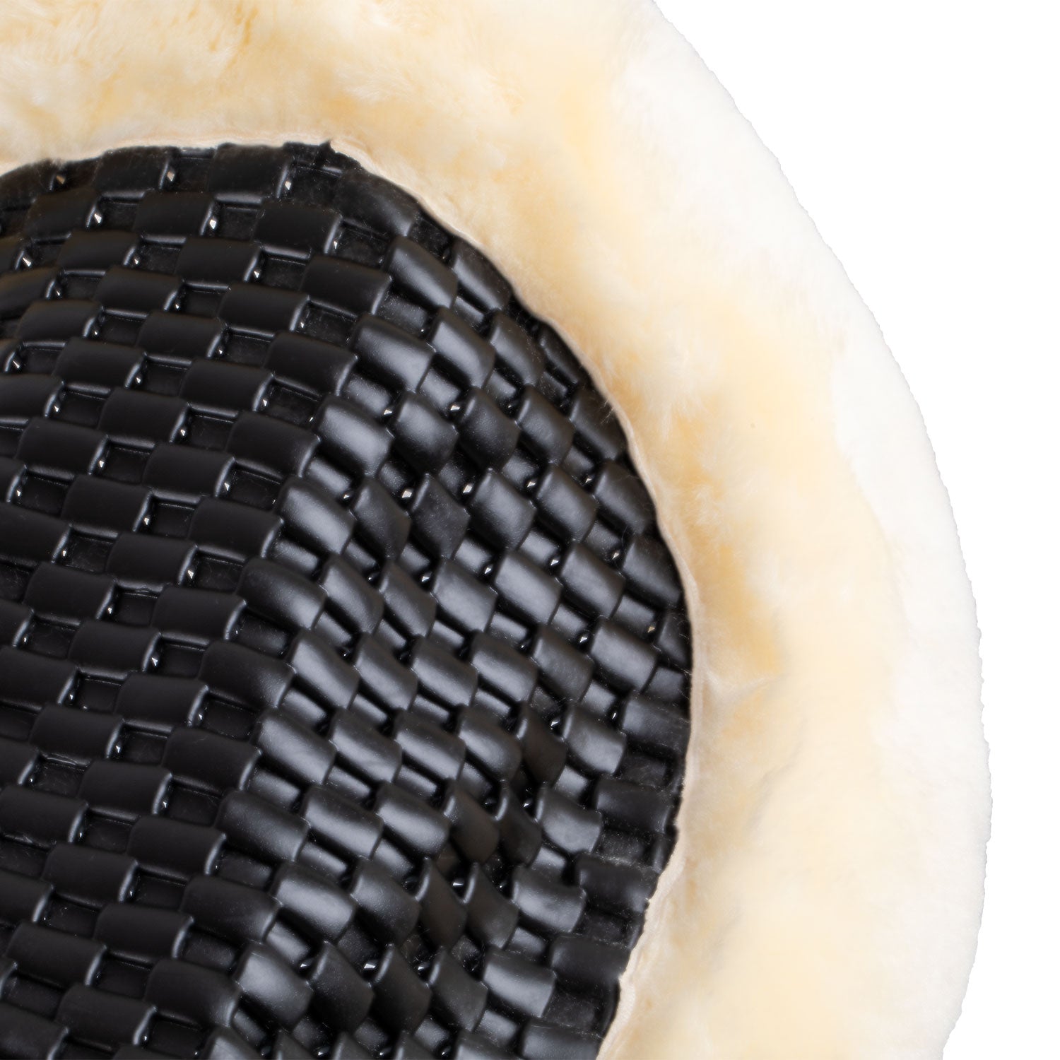 >The faux sheepskin partial edge provides superior cushioning and a pleasant feel on contact.