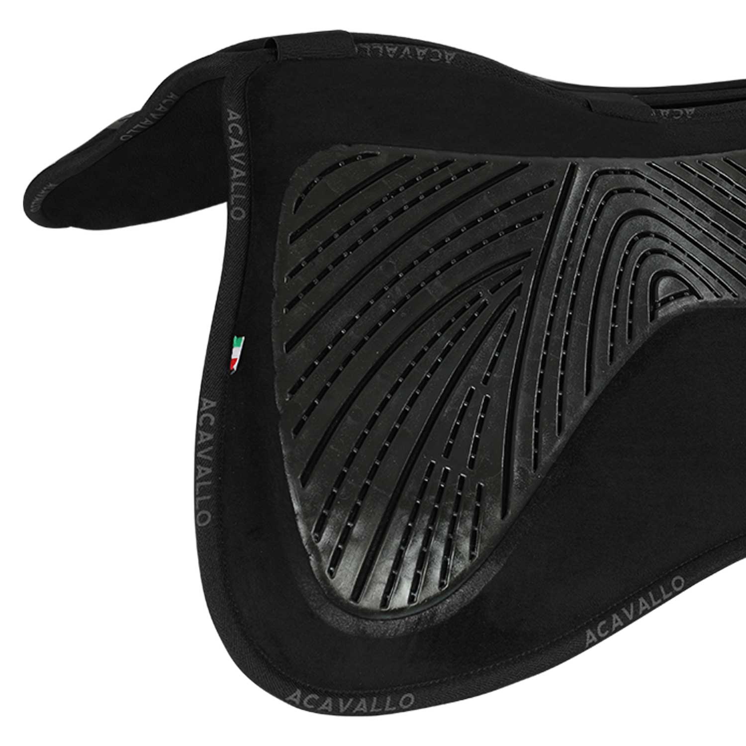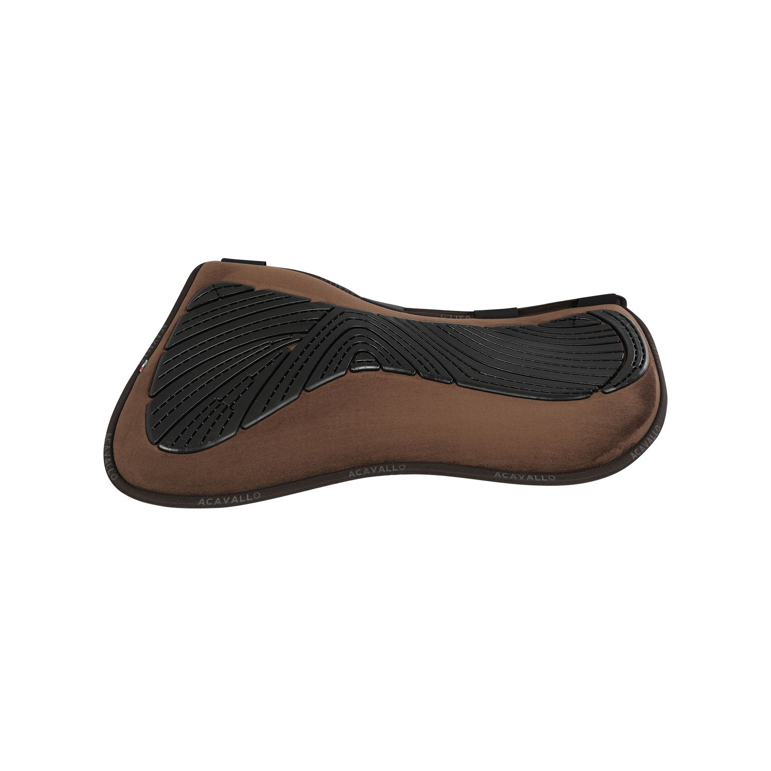 The Acavallo® half pad shape memory foam flat pad with classic withers and free spine in suede with gel grip offers comfort and adaptability to the horse.