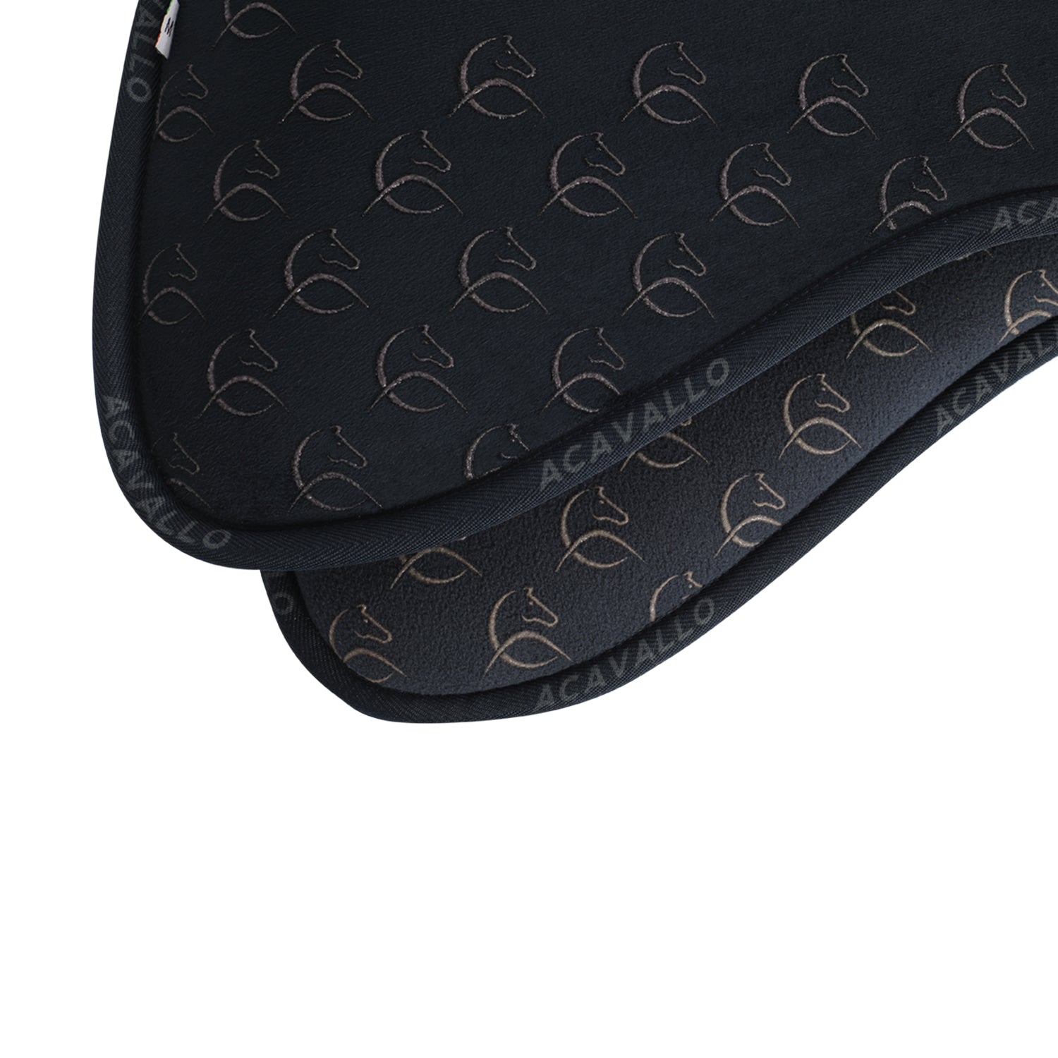 The Acavallo® flat pad in memory foam dressage shape with shaped withers and 3D spacer spine in suede and silicone grip offers a superior riding experience, combining the exceptional shock-absorbing properties of memory foam with a tapered design that guarantees a deep and stable contact with the horse's back.
