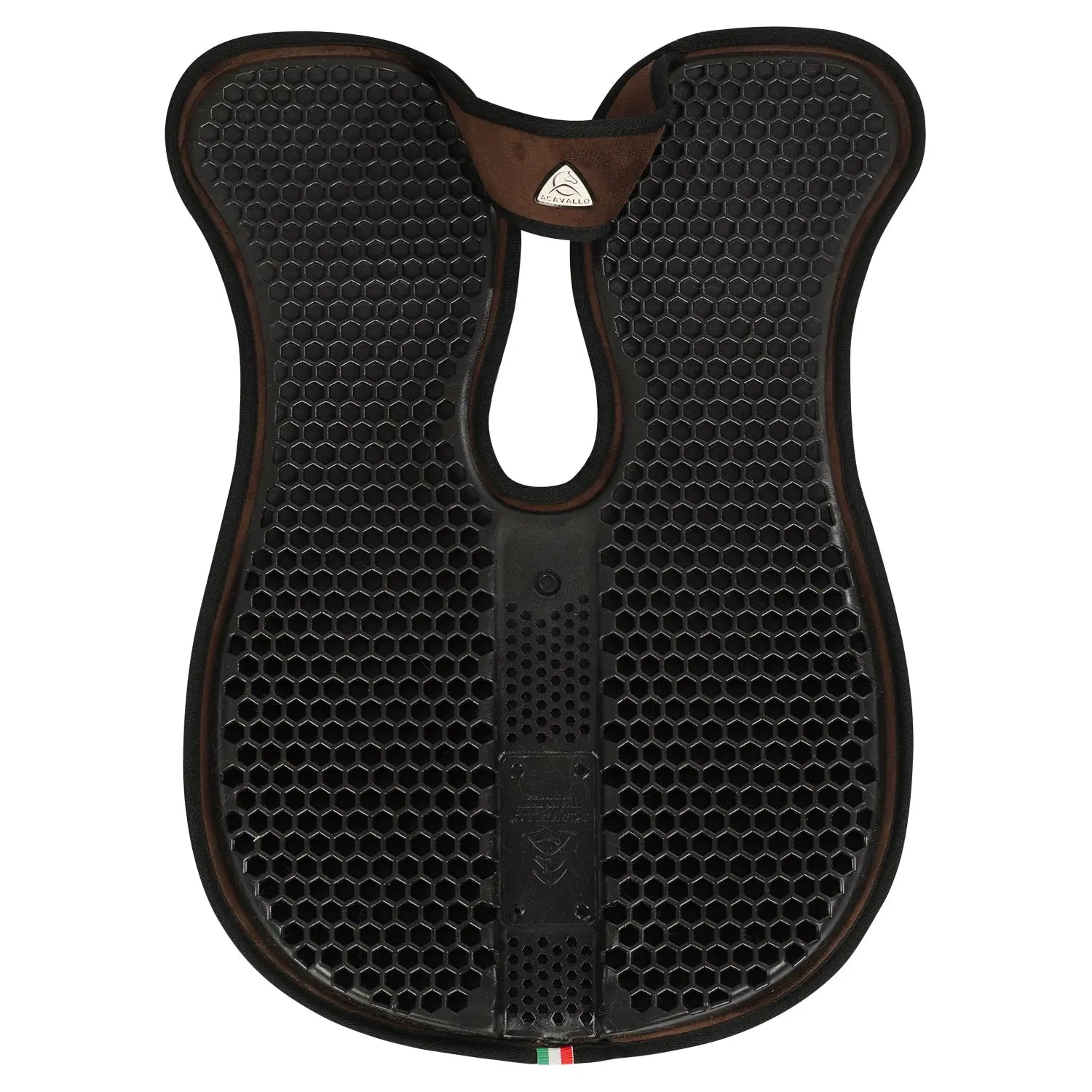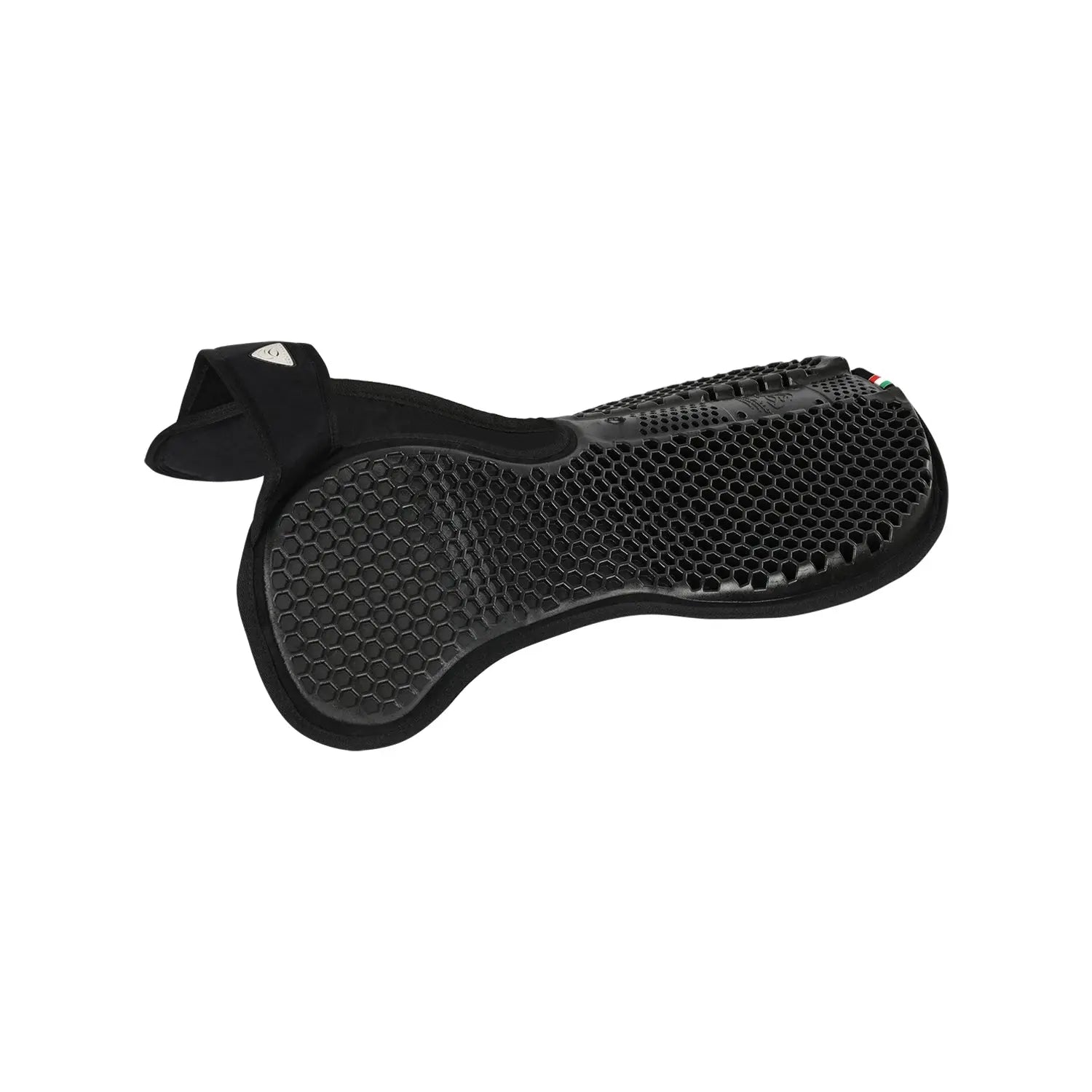 >The non-slip, shock-absorbing and hexagonal-shaped gel of this pad, combined in the lower part with suede fabric and with a 4mm thick internal open-cell foam, make it breathable, while maintaining maximum comfort on the horse's back.