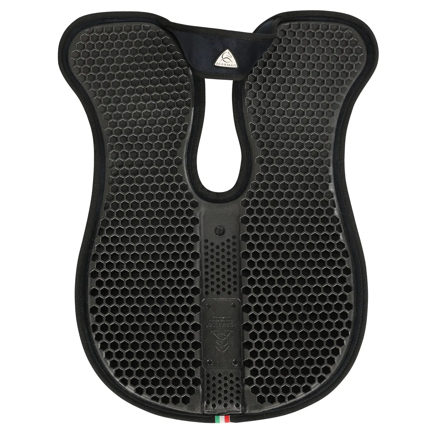 >Thanks to the hexagonal gel structure, the air is compressed inside the pad cells and is automatically expelled as the horse moves, creating an air cushion under the saddle, making it suitable for any style and size of English saddles.