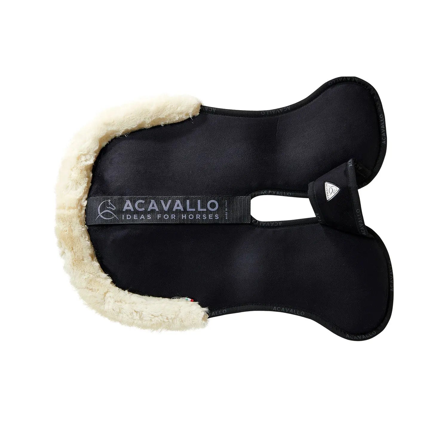 >Acavallo® faux sheepskin is highly absorbent and prevents friction or chafing on the horse's skin, as well as protecting against impacts and compression.