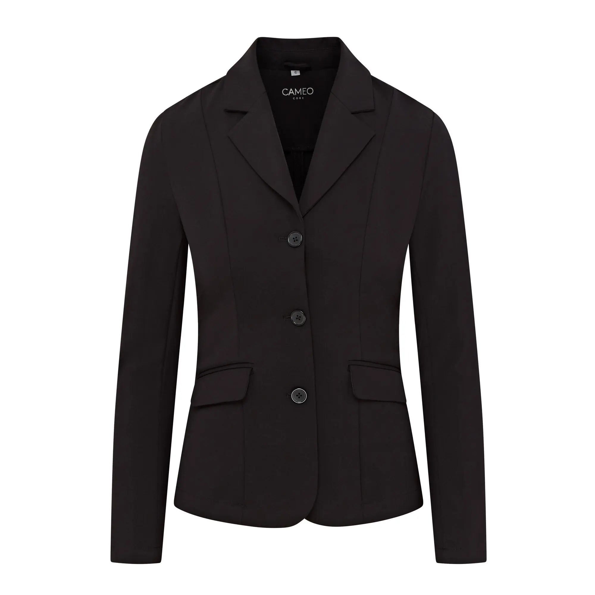 The Cameo Equine Ladies Ada Competition Show Jacket is expertly crafted with technical stretch fabric for a sleek, tailored fit. With premium fabric providing flexibility and comfort, this structured and fitted jacket offers a polished and stylish appearance. This ladies competition jacket features a hidden zip beneath the front three pockets to prevent pulling and double front pockets add to the clean and stylish design, all at an affordable price.
