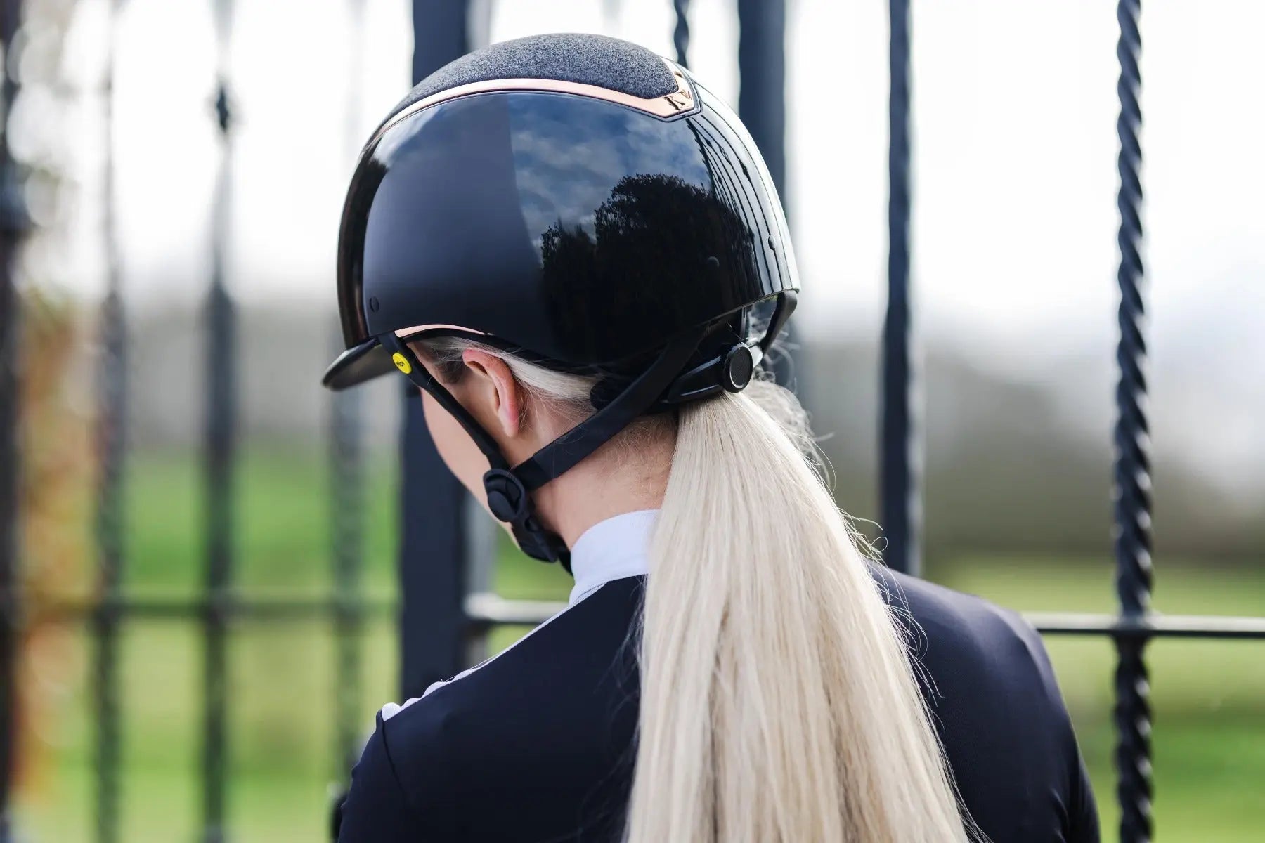 Introducing "The Kylo", a revolutionary dial-fit helmet from EQX by Charles Owen; a pioneering addition to your equestrian gear. This stylish horse riding hat boasts an adjustable shell for ease of fitting, thanks to its innovative rear dial. The Kylo also adds a touch of rose gold sparkle to your riding attire, making it a fashionable and functional choice. This adjustable horse riding hat conforms to PAS015 and VG1 safety standards with the addition of MIPS, ensuring optimal protection for the rider.