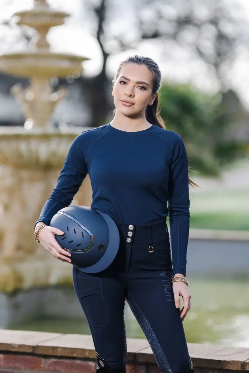 Introducing "The Kylo", a revolutionary dial-fit helmet from EQX by Charles Owen; a pioneering addition to your equestrian gear. This stylish horse-riding hat boasts an adjustable shell for ease of fitting, thanks to its innovative rear dial. The Kylo in navy matte offers a stylish, sleek look, making it a fashionable and functional choice. This adjustable horse riding hat conforms to PAS015 and VG1 safety standards, ensuring optimal protection for the rider. This version offers a stunning wide peak fit, popular for sunny weather and showjumping combines style and function.