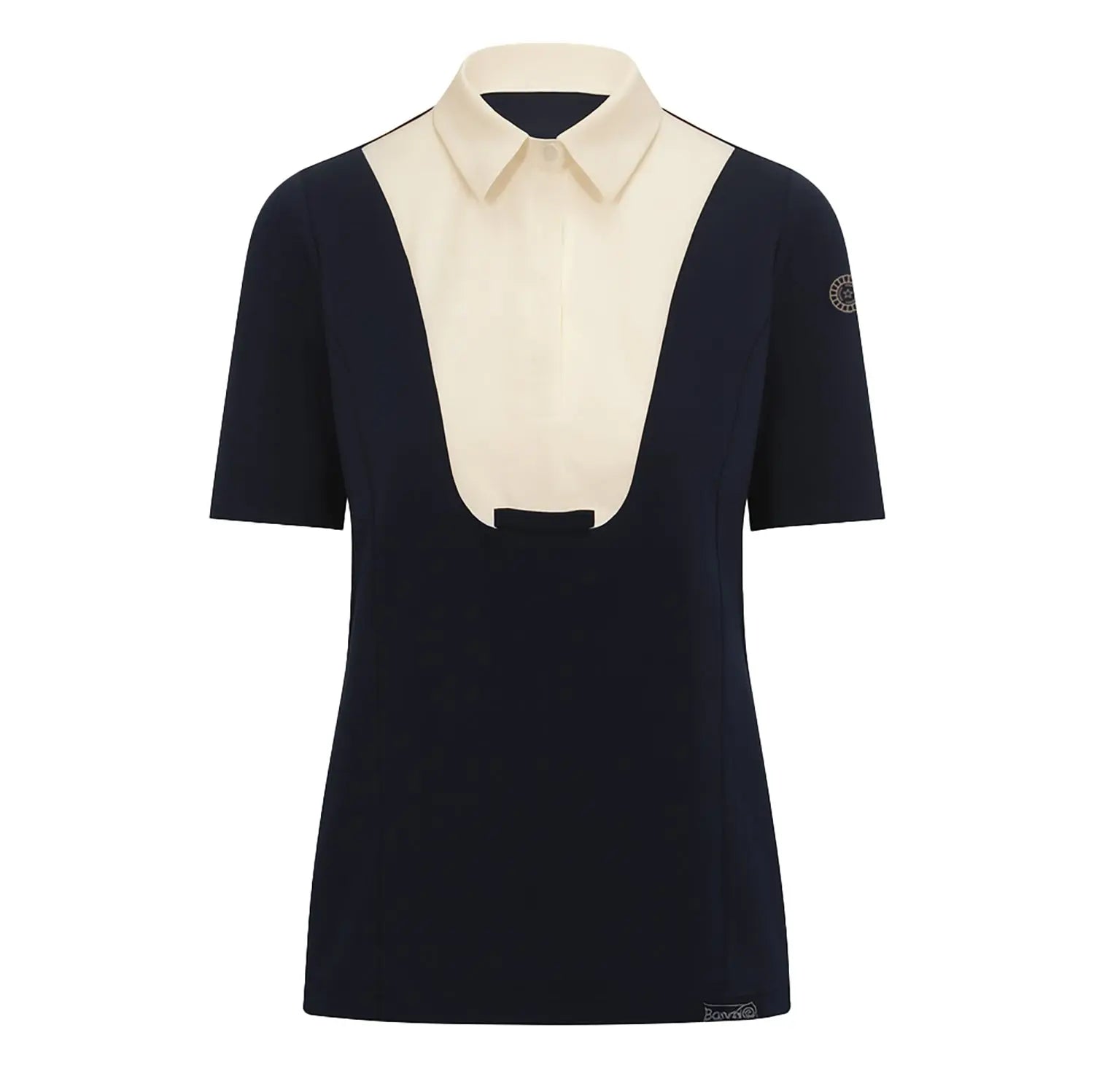 Designed with the modern rider in mind, the Elite shirt features a sleek quarter zip for ease of use before and after competition. A discreet loop tie stay ensures your tie stays perfectly positioned throughout your ride, while the petite crisp collar offers a polished silhouette with collar pin holes for a touch of traditional elegance. The contrast cream bibflatters the navy body, creating a competition-ready look with a smart, tailored finish.