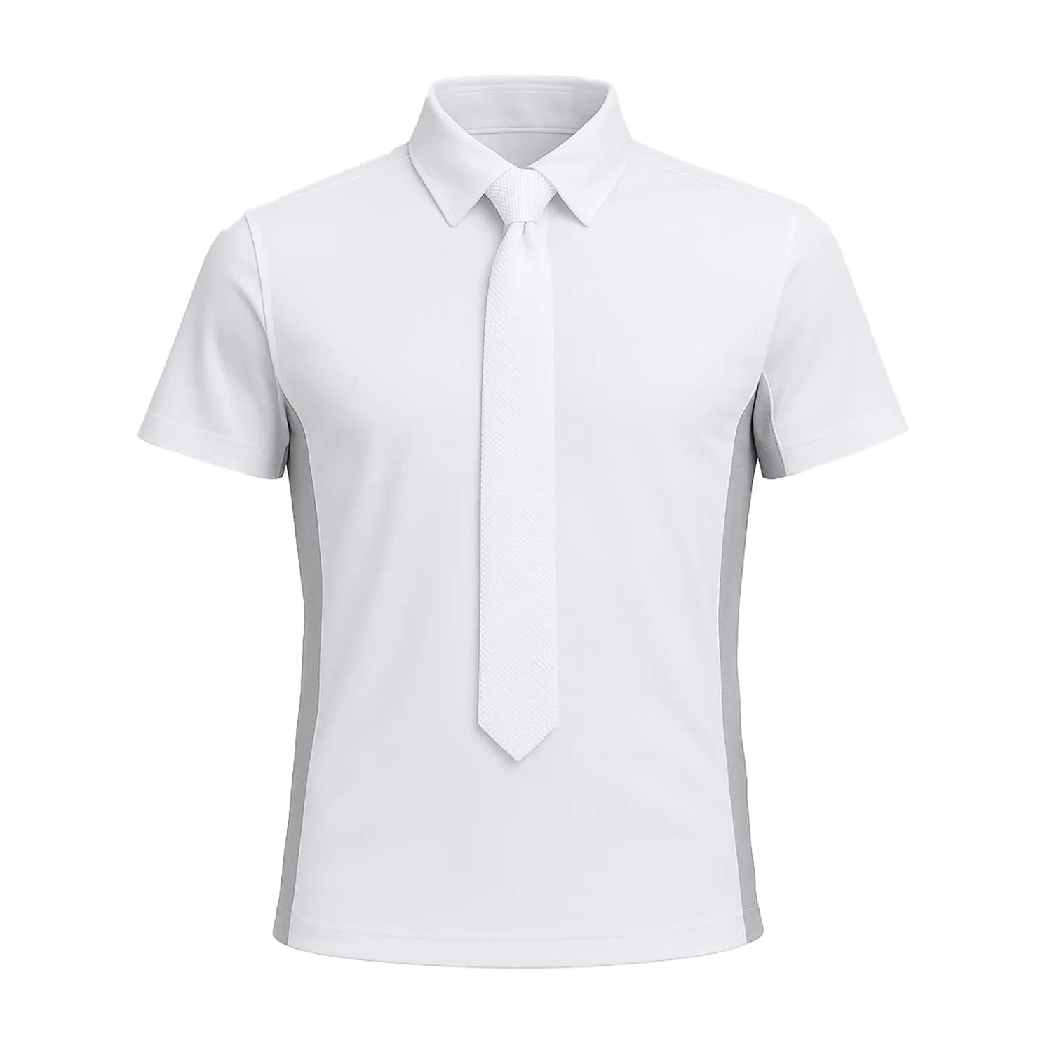Designed with the male equestrian in mind, the shirt features contrast grey side panels, offering a modern and athletic aesthetic while subtly contouring the torso for a flattering fit. These side panels are not only stylish but enhance ventilation, making them ideal for warm-weather riding or indoor arenas.